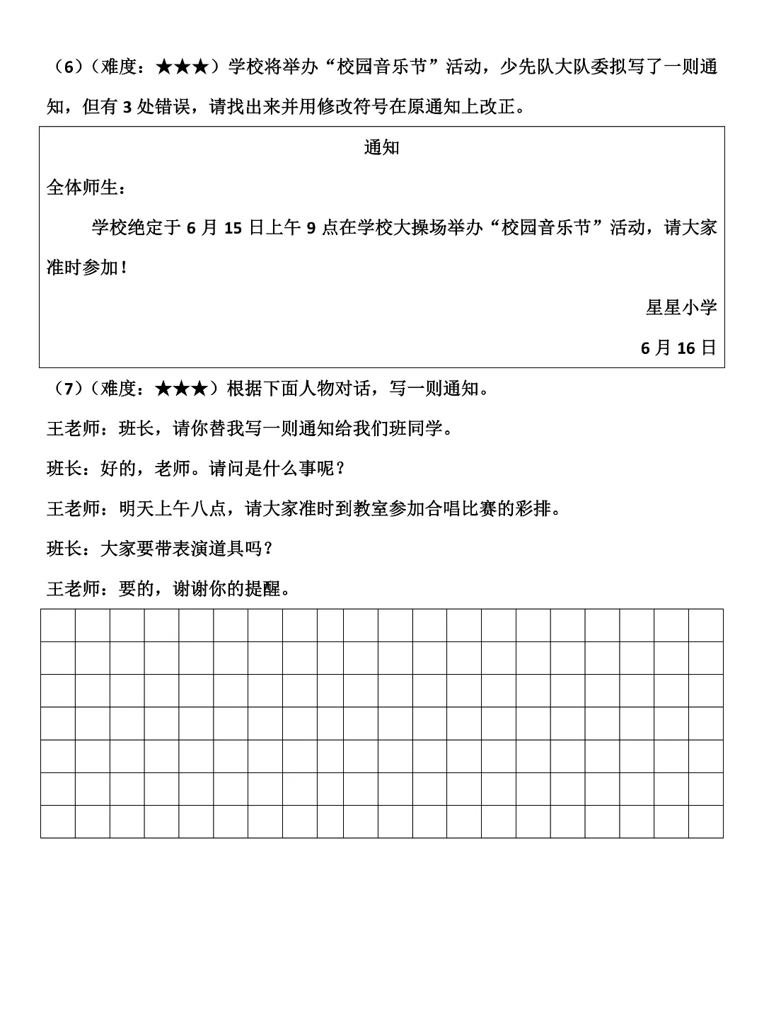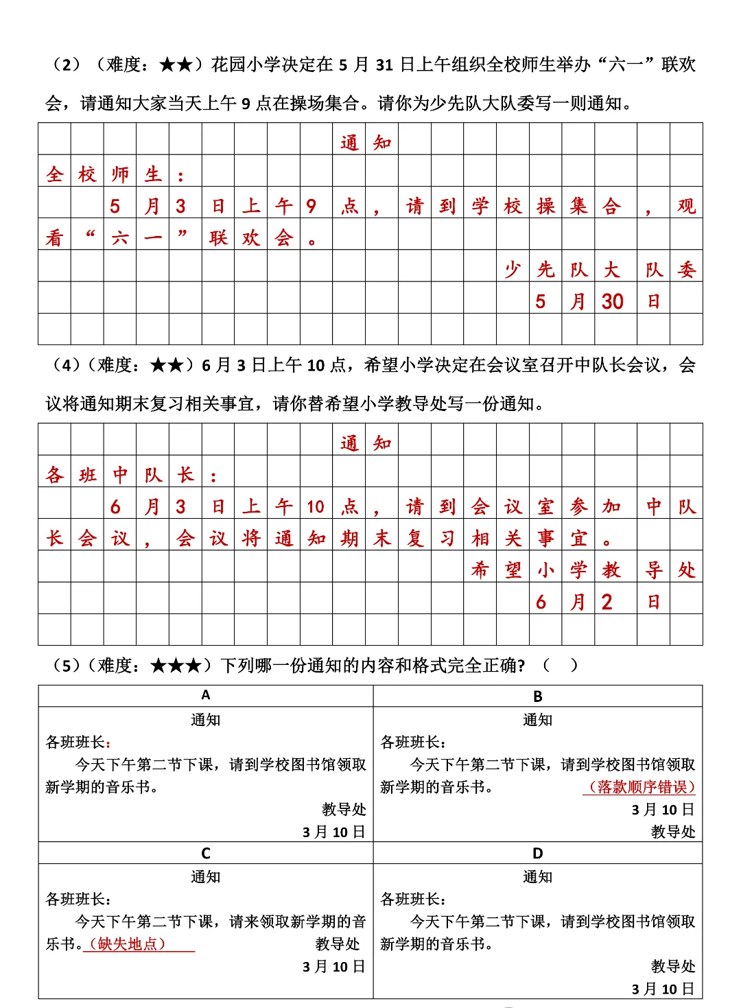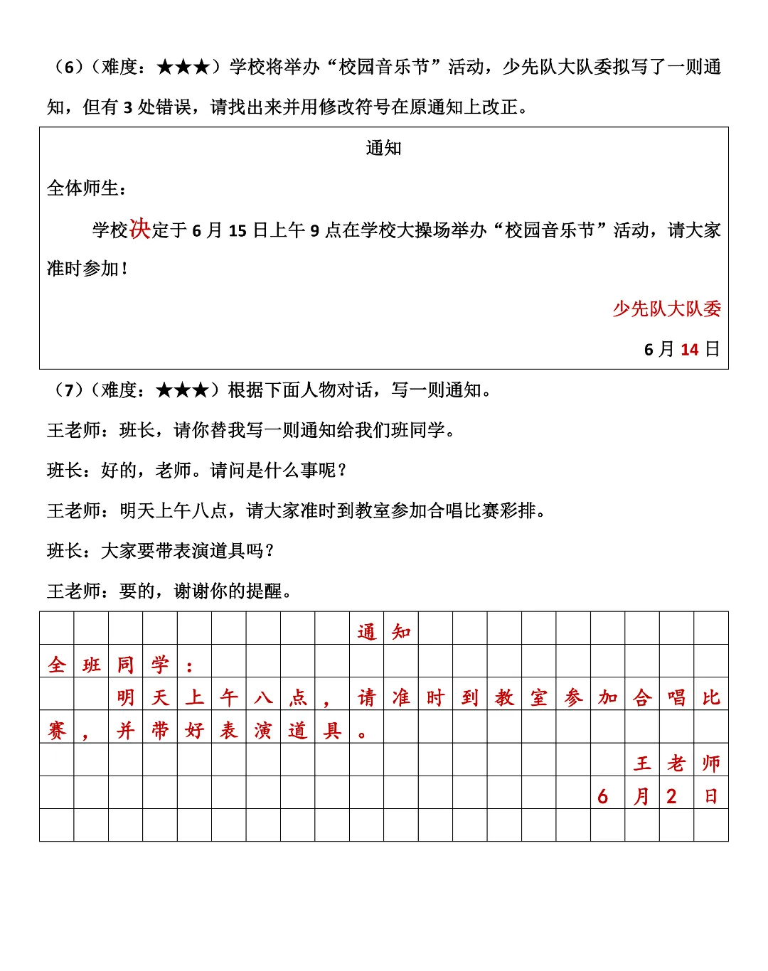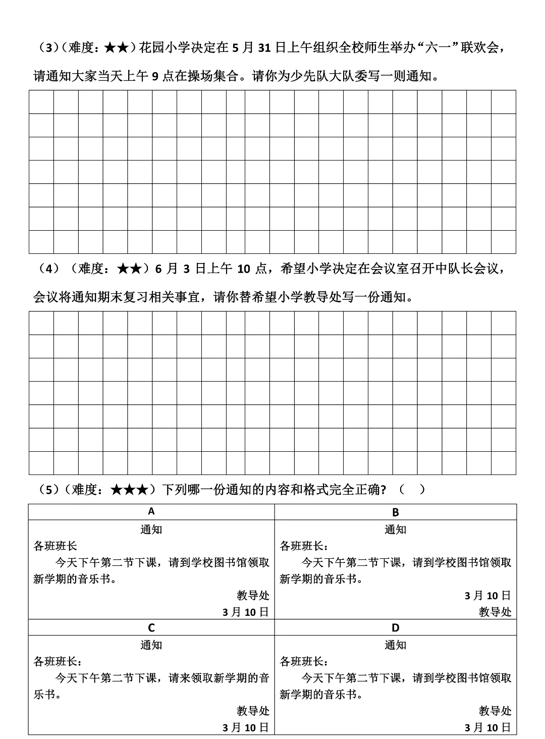 三年级下册语文《通知专项练习》,高清电子版可打印!