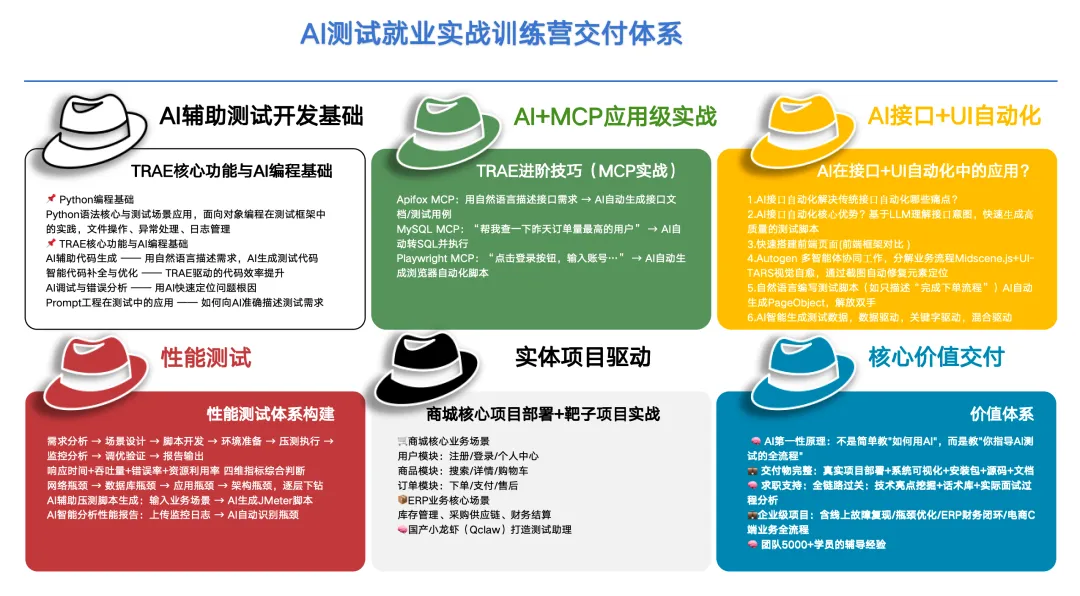 回到主题,自信的说,我们的AI测试平台能力在行业里面处于前列,设计开发维护平台的同学都是头部互联网公司,是行业的拓荒者,下面介绍AI测试就业实战训练营的价值,不喜欢付费训练的可以划走。