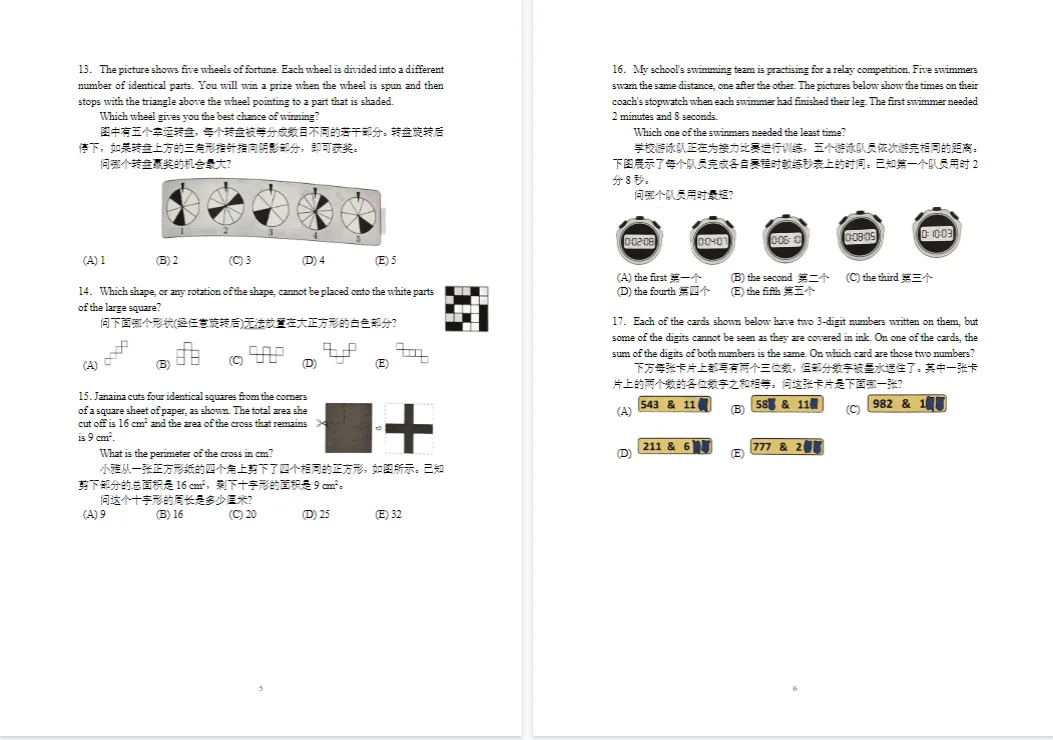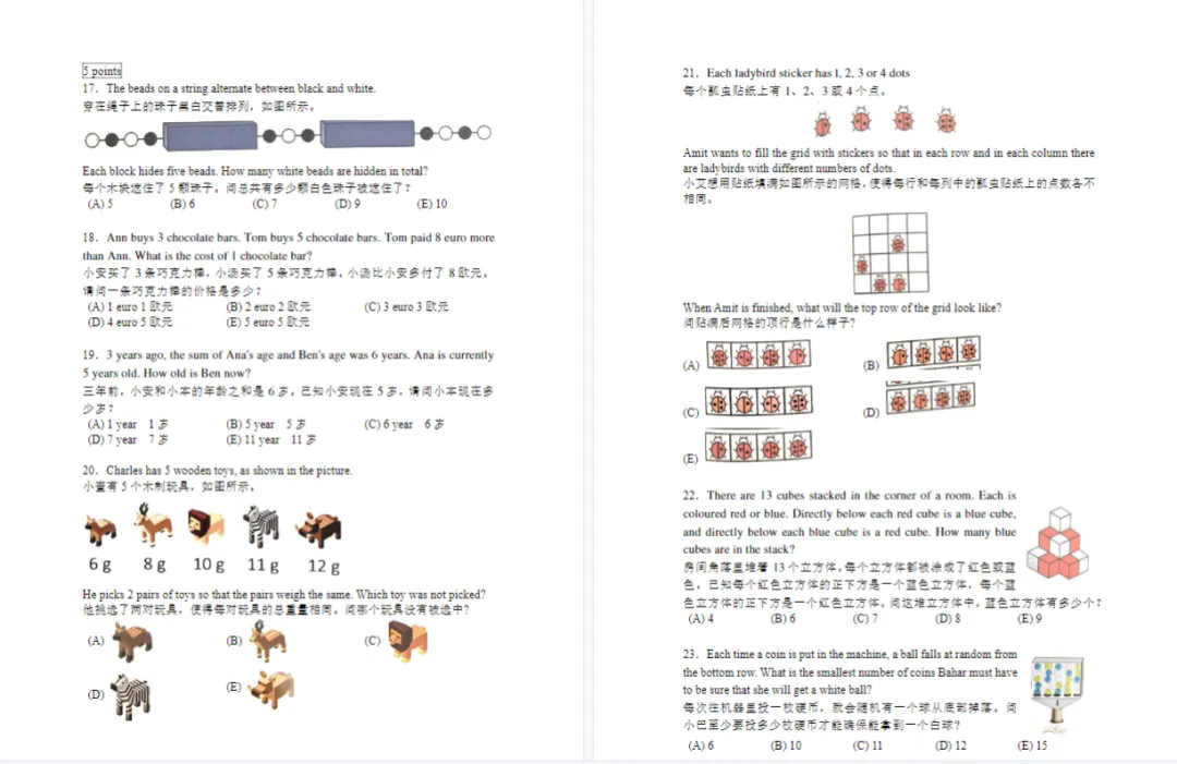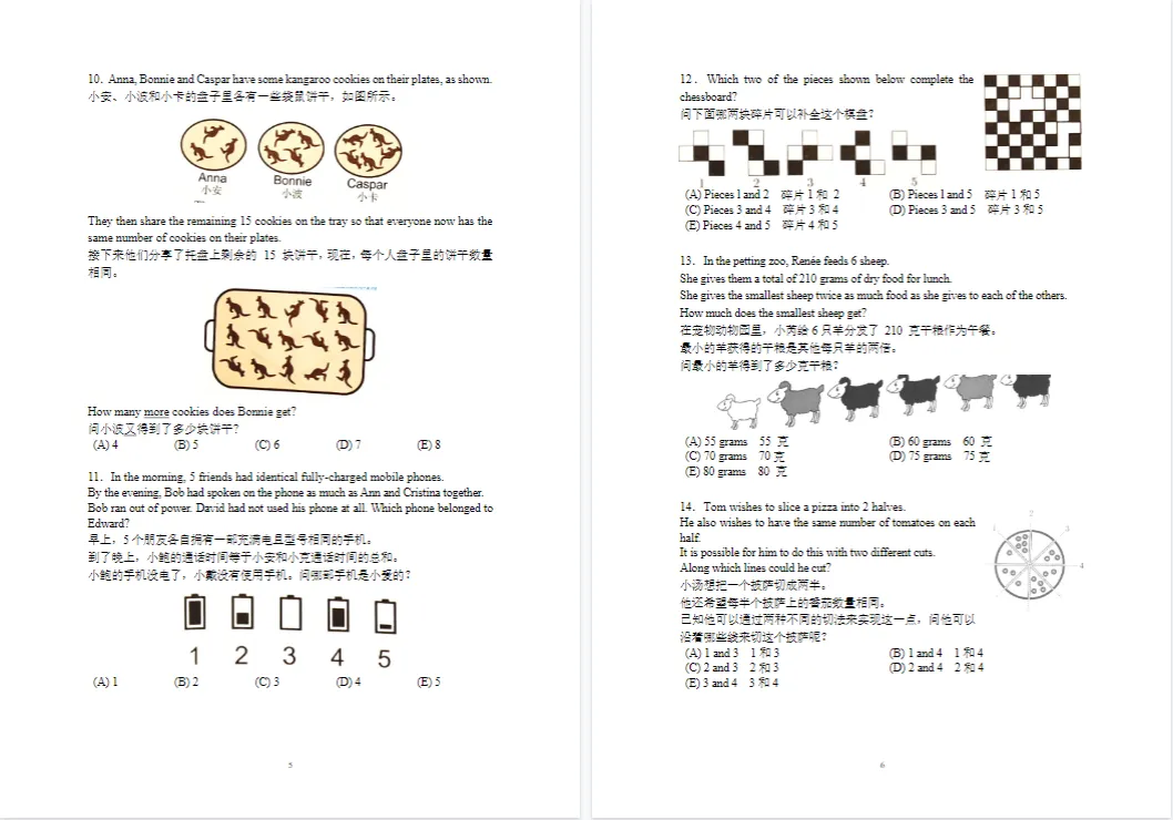 2025年袋鼠竞赛真题1-6年级电子版,考前请仔细在刷一遍!