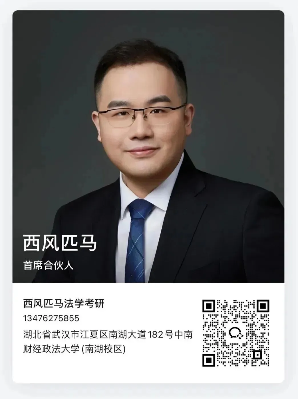 Matt律师(西风匹马),中南财经政法大学法学本科、民商法学硕士,中南民商法学考研初试第一。西风匹马教育首席合伙人、创始人,湖北观筑(江夏)律师事务所权益合伙人。