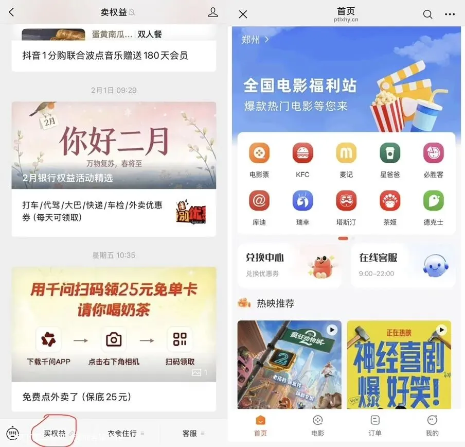 公众号“卖权益”主板块升级“优惠电影票”/“优惠点餐”/“优惠视听会员”等多个功能,日常有需求的客户可以多来看看比价