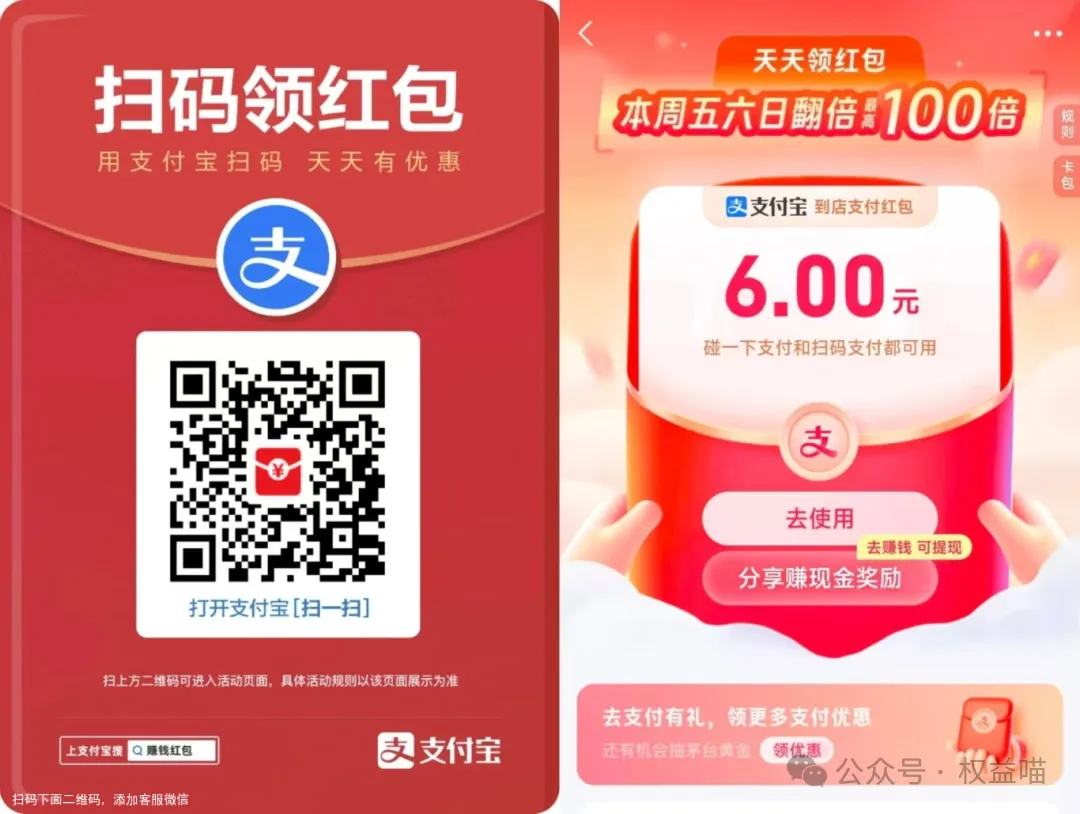 1、支付宝实体店大额收款码红包