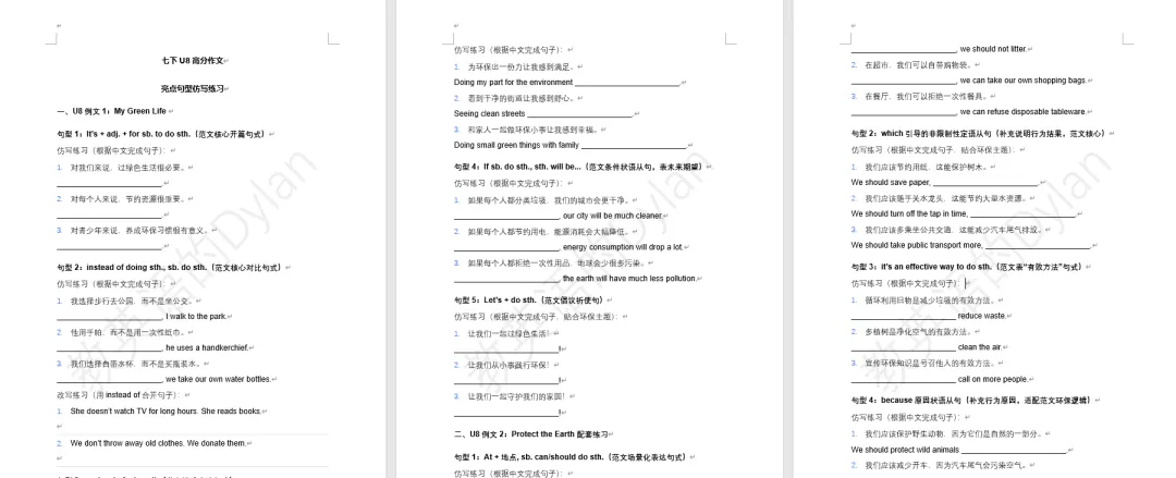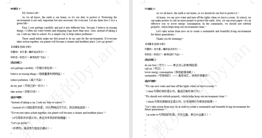 仁爱版初中英语 | 七下U8原创高分作文精选(电子打印版,限时下载)