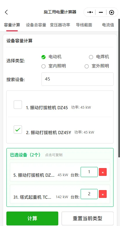 功能归档:工程计算器CoYis > 其他 > 临时用电