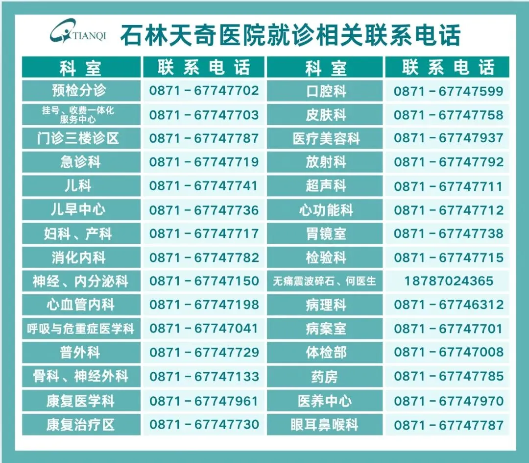 石林天奇医院健康助手微信公众号为您提供医院动态、医疗服务资讯、专家坐诊、健康科普等。欢迎大家订阅~~~