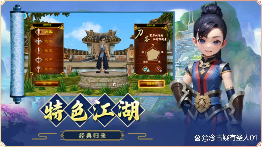 刀客绝对是新手亲爹,血厚防高还能群攻,55级解锁群攻技能后拉一圈怪直接旋风斩清场,挂机稳得一批。关键是这职业不吃操作,手残党也能在南明湖站住脚,刷怪效率拉满还不费药水。