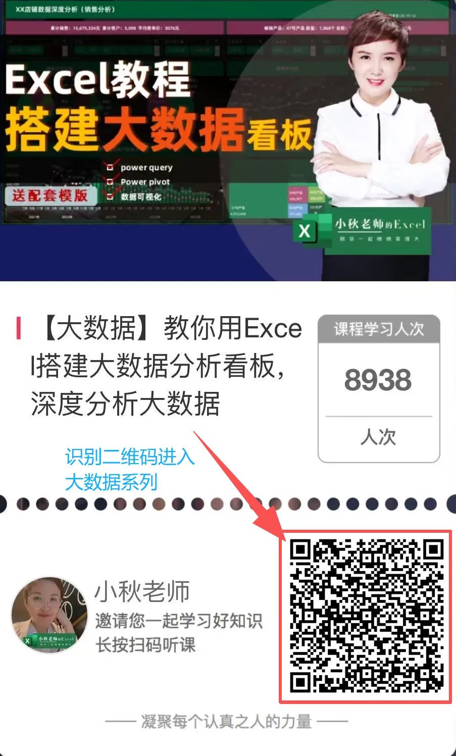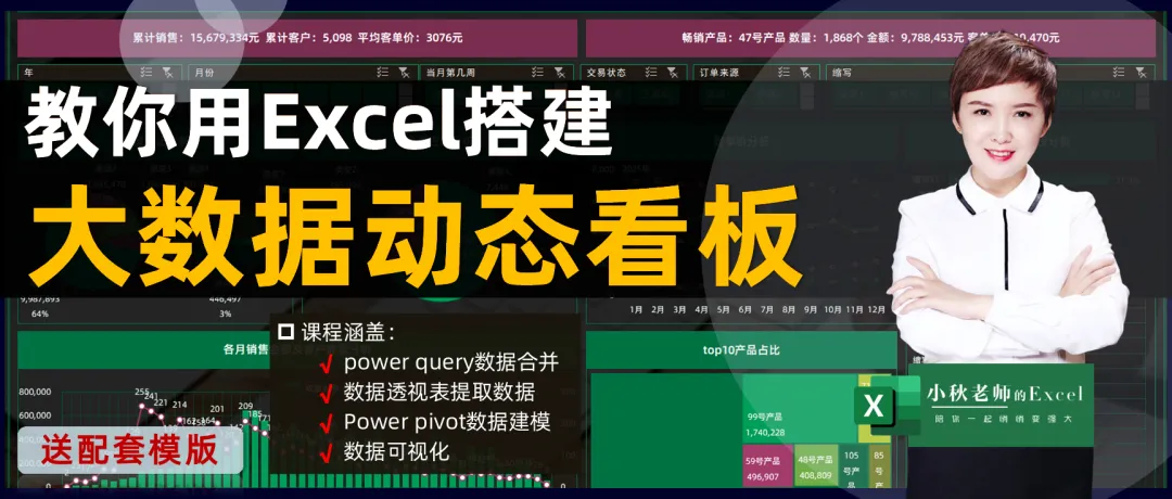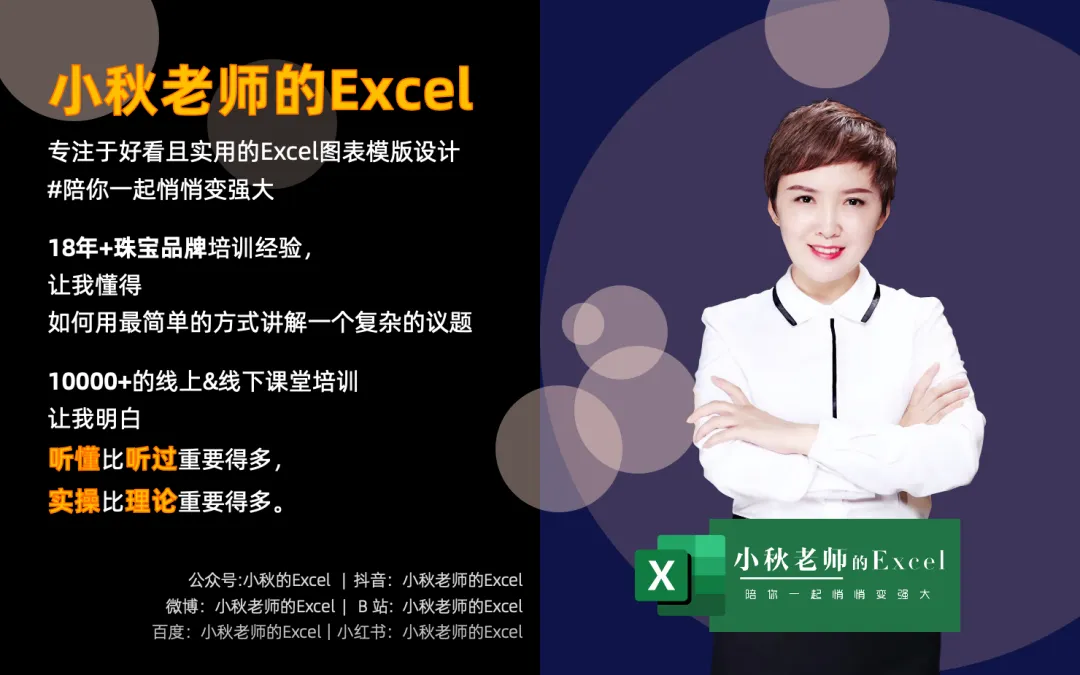 • 小秋老师:小秋的Excel主理人,18年培训经验,擅长大数据分析与企业模版定制设计,专注于好看且实用的Excel图表设计