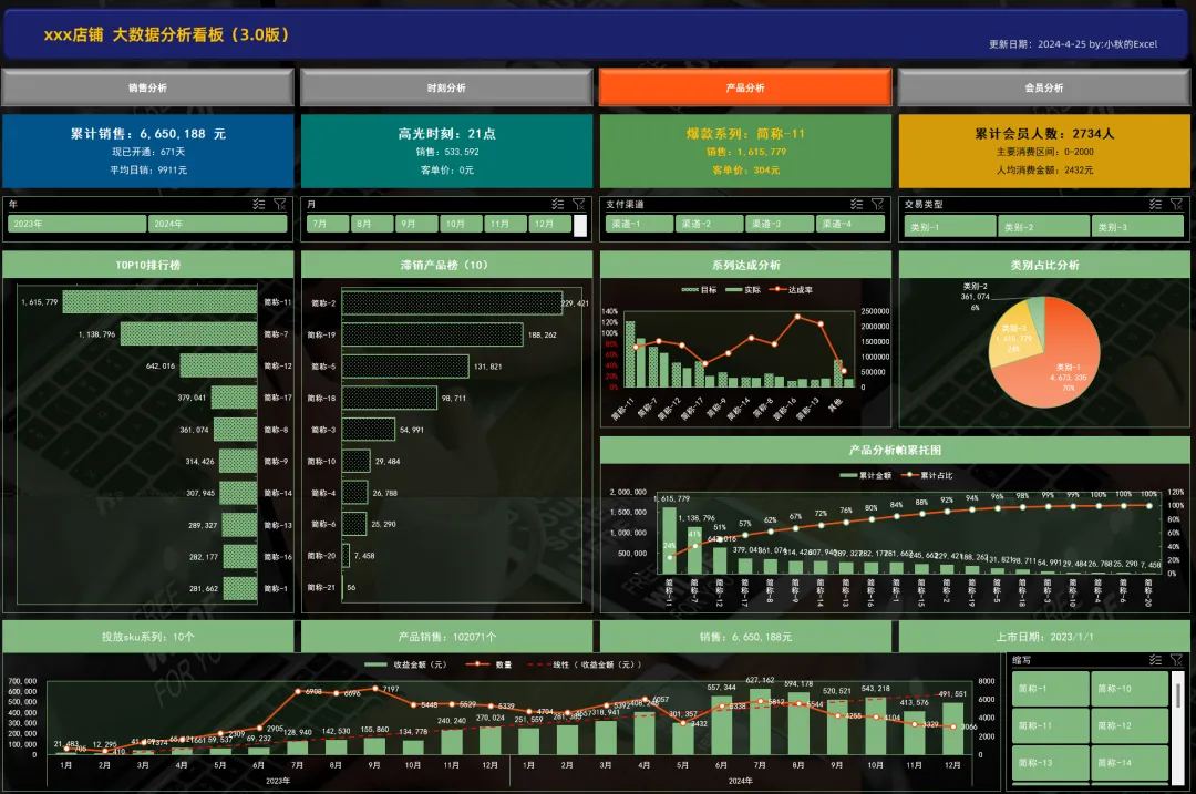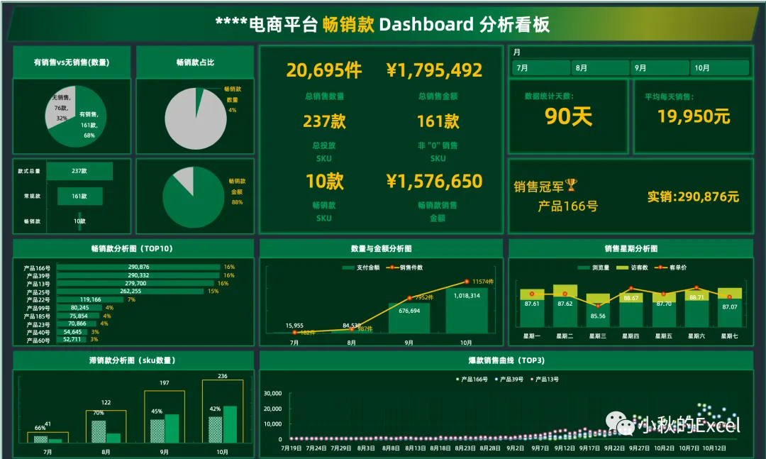 电商平台畅销款Dashboard分析看板(WPS可)