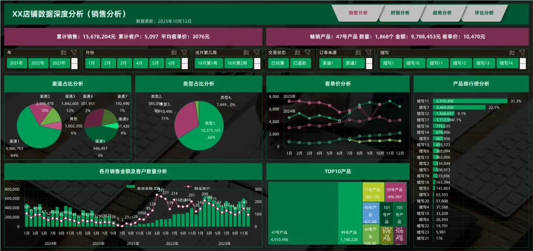 一句话:运用excel基础技能,实现销售数据可视化分析(WPS可)