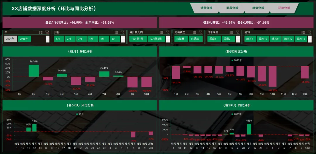 (分析内容:各月分析 、产品分析、环比分析、占比分析、趋势分析、时刻分析)