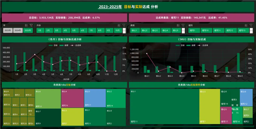 • 根据数据源资料,运用Excel技巧,编辑可视化大屏动态看板