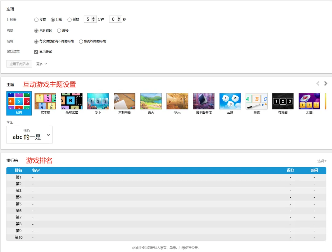 教师可根据课堂需要调整活动难度、修改主题、设置计时器等,打造专属教学资源。