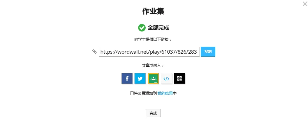 2️⃣完成后点击“完成”,系统自动生成游戏链接;