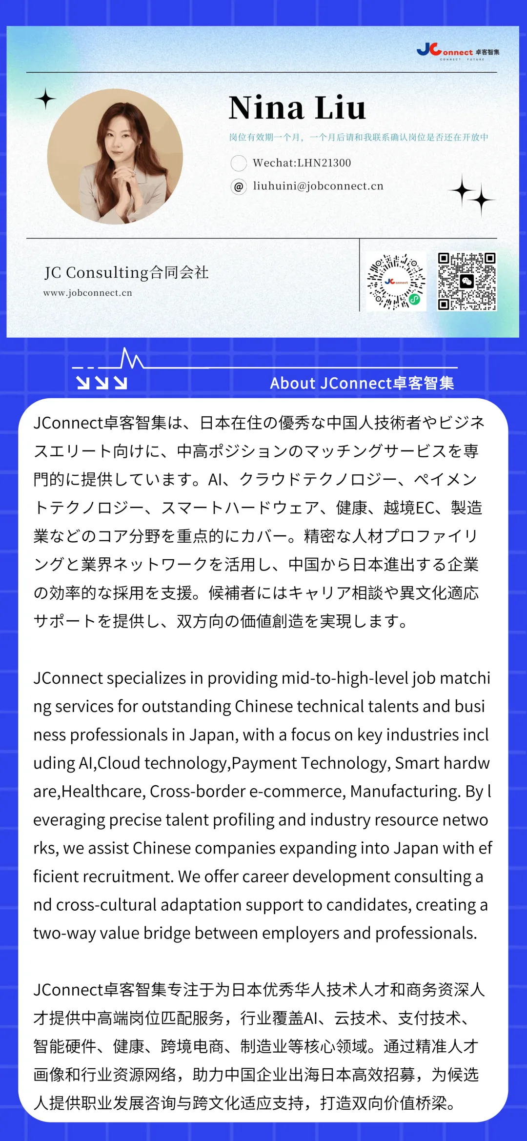 - 优先:海外留学或工作经验;能接受短期日本出差