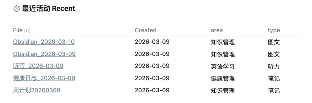 两种方式都是记录,但是都没有进行汇总,而 Dataview 做的事情,就是把这些零散信息整理出来。最后通过表格的形式展现出来: