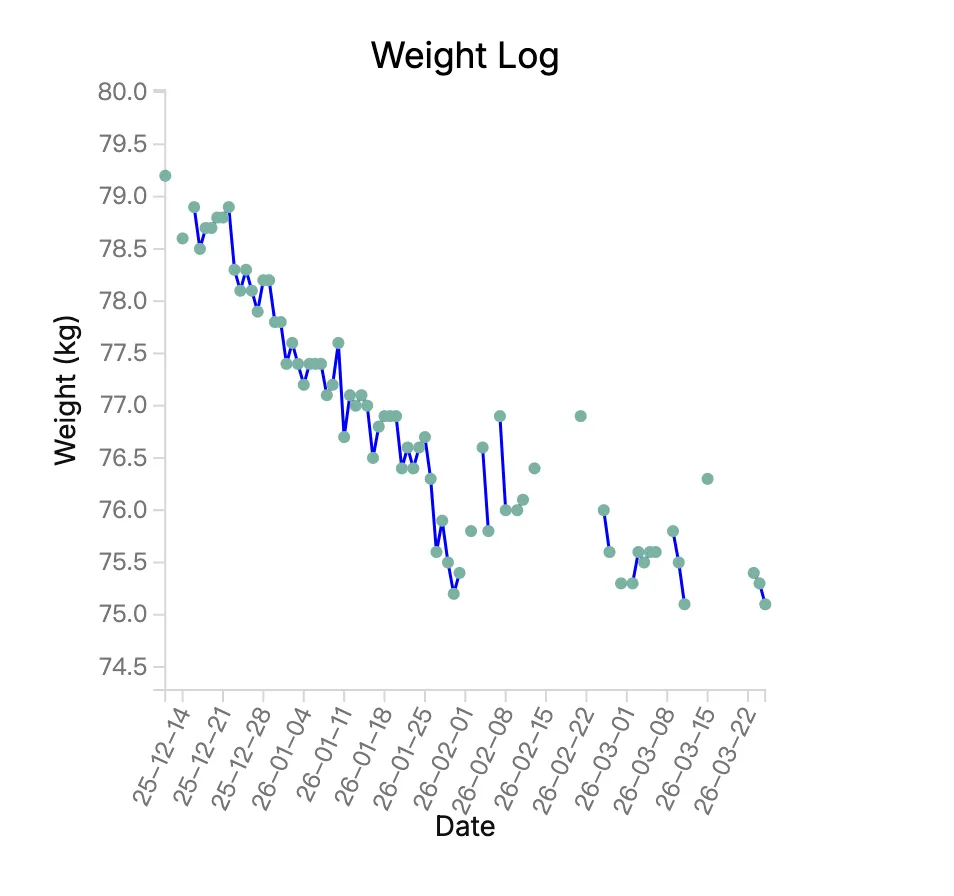 有兴趣可以看文章:《我用 Obsidian 管理健康:只记录这几项健康数据》,当这些数据被画成图表之后,你会发现一件很有意思的事情:很多变化,其实一眼就能看出来。有时候一个简单的折线图,比几十条笔记更有意义。