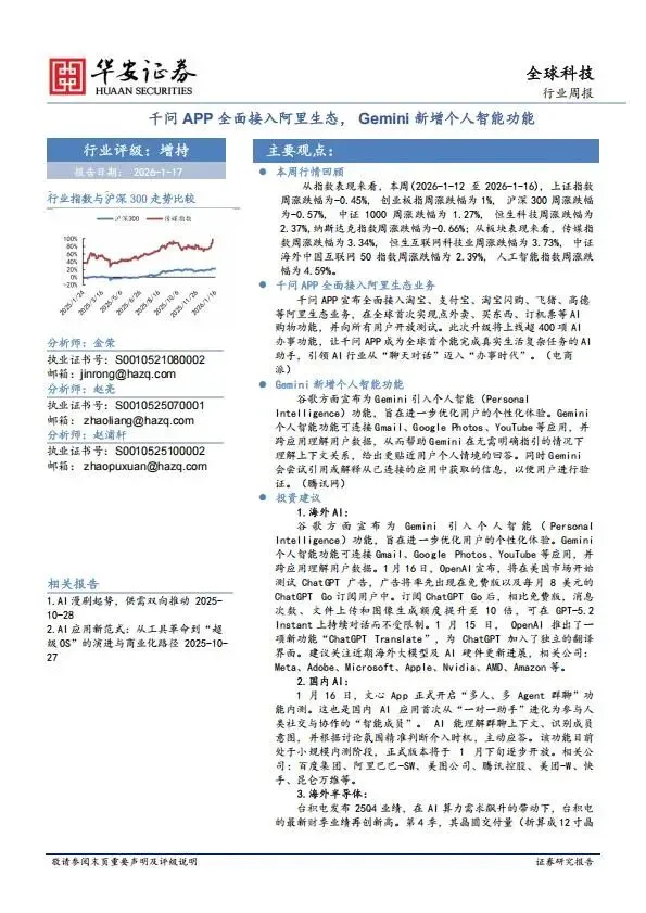 千问APP全面接入阿里生态,Gemini新增个人智能功能