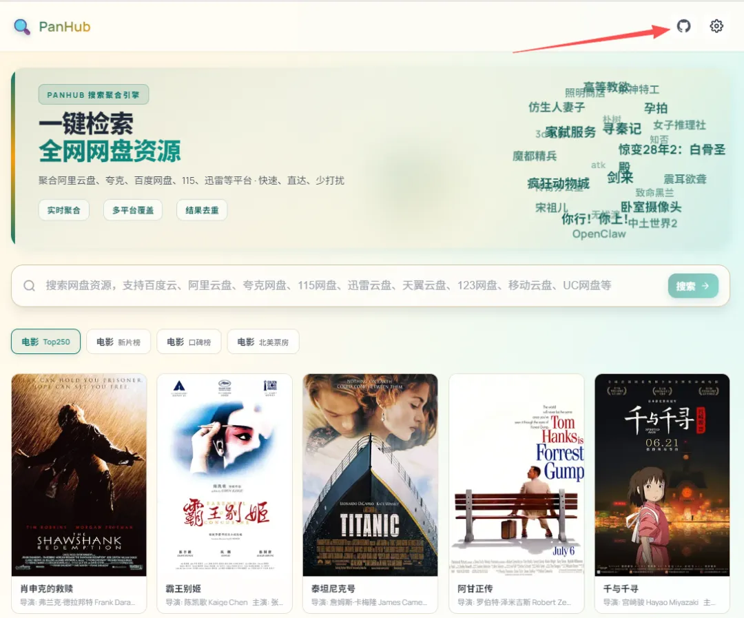 「Panhub」一个 聚合的网盘搜索工具。它可以聚合多个优质资源站和公开频道,一次搜索即可覆盖阿里云盘、夸克、百度网盘、115、迅雷等热门网盘资源。