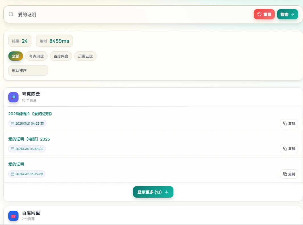 这意味着可能会遇到一些过期失效的链接,这是这类开源的聚合网盘搜索工具的通病。