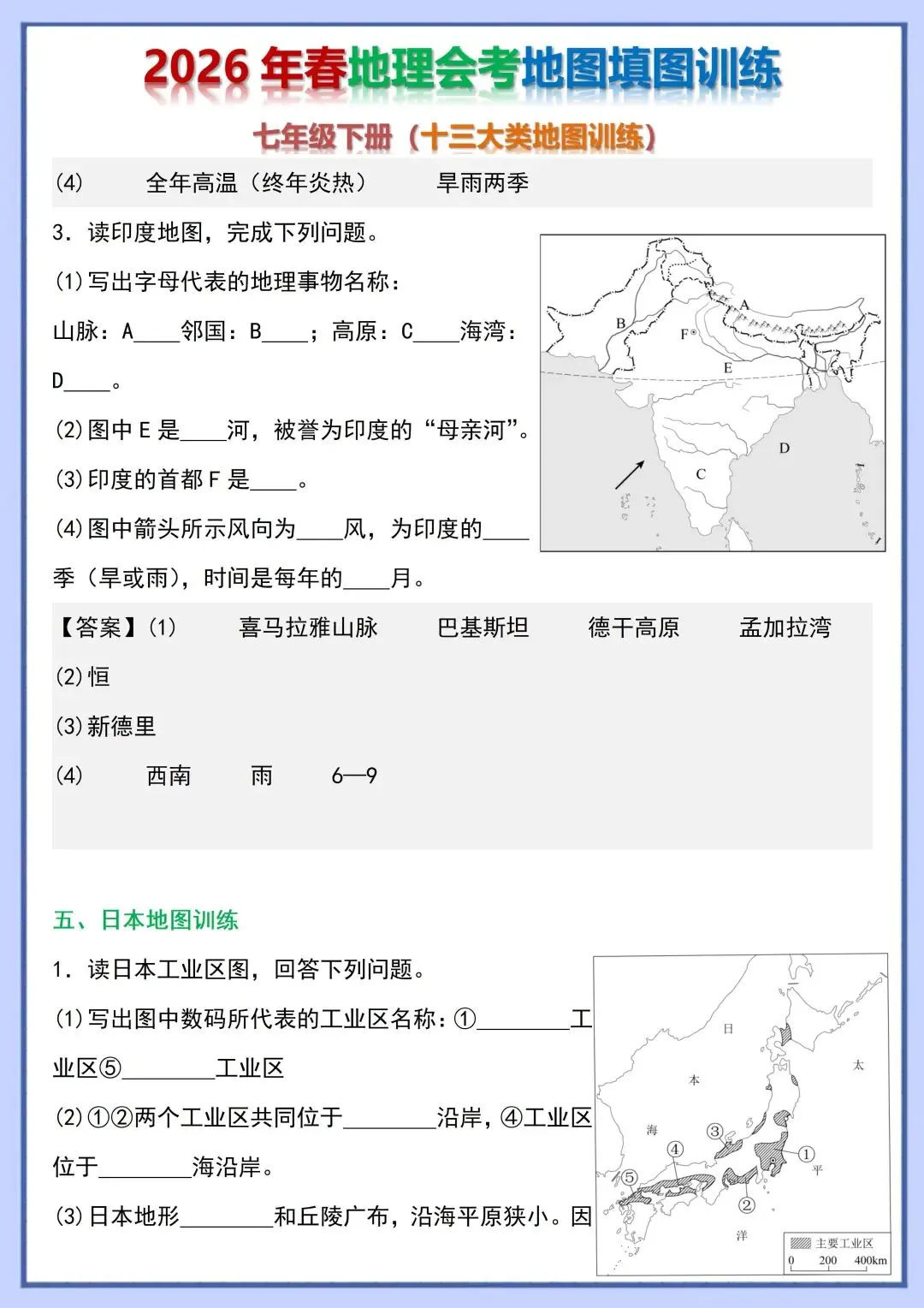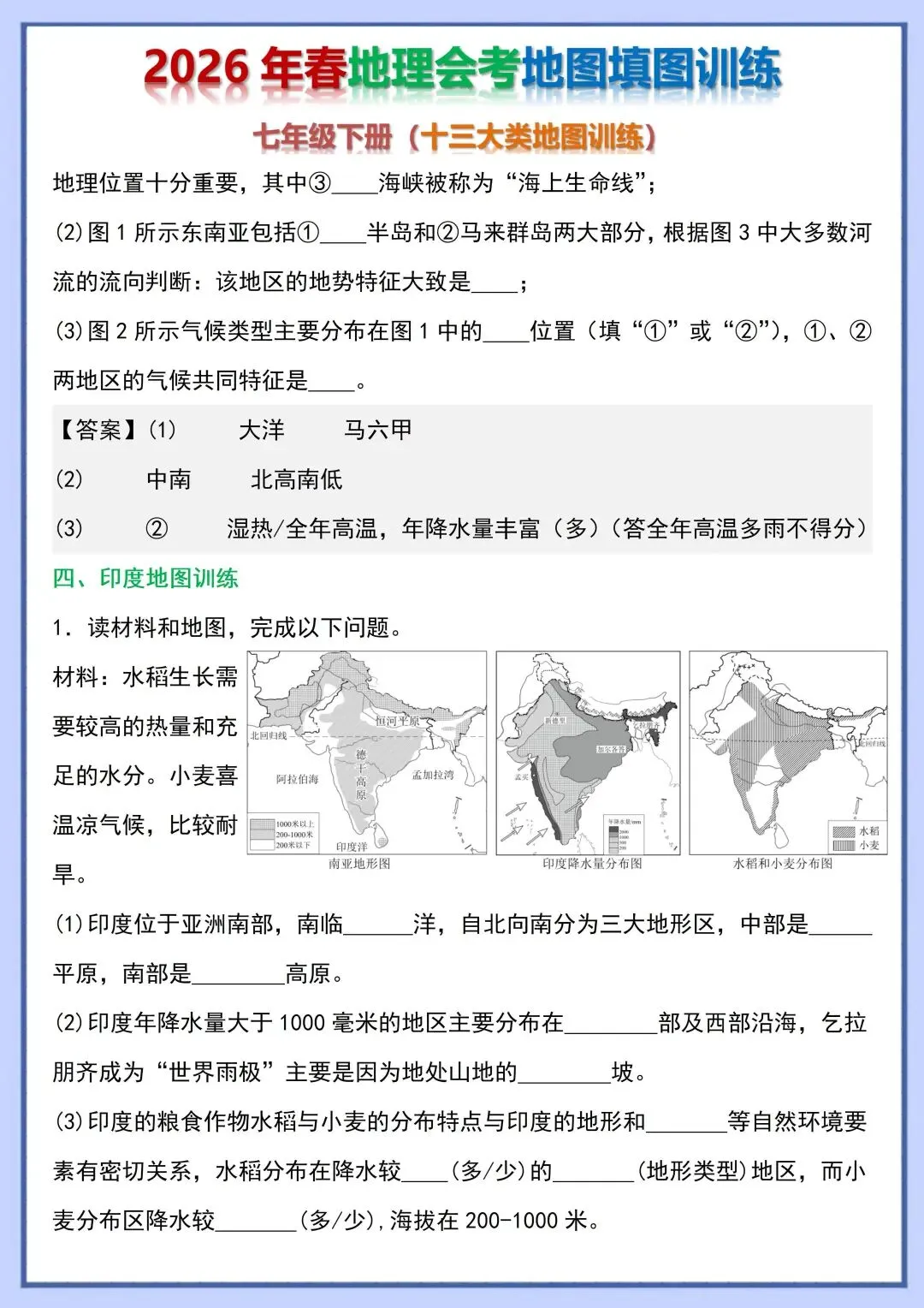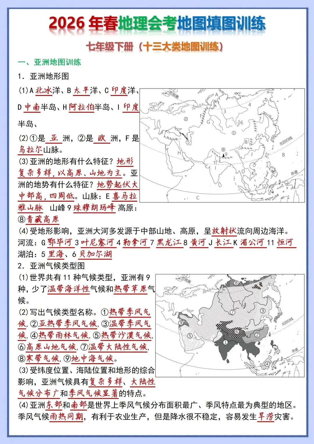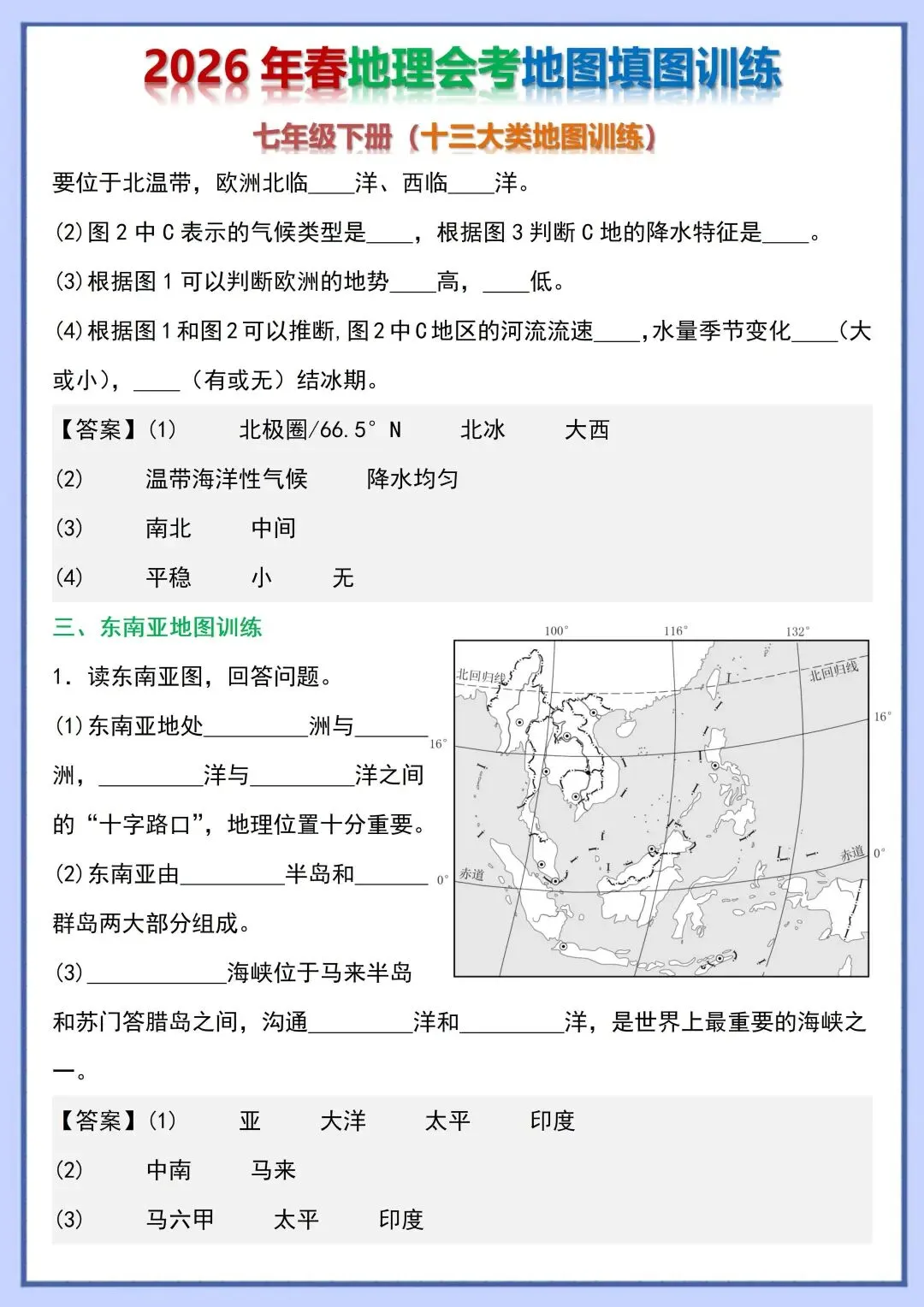 2026 初中地理会考复习地图填图训练,电子版可打印!