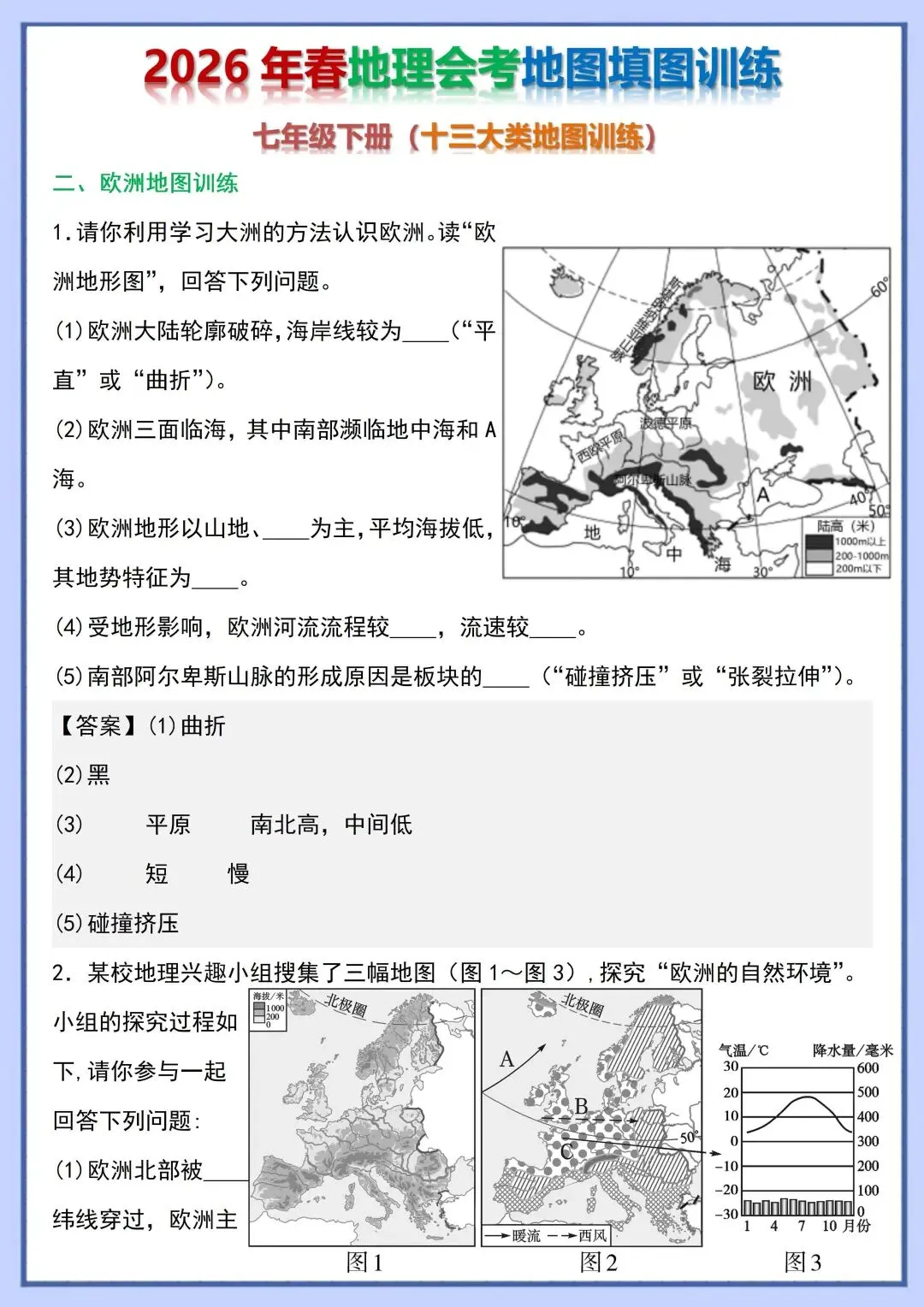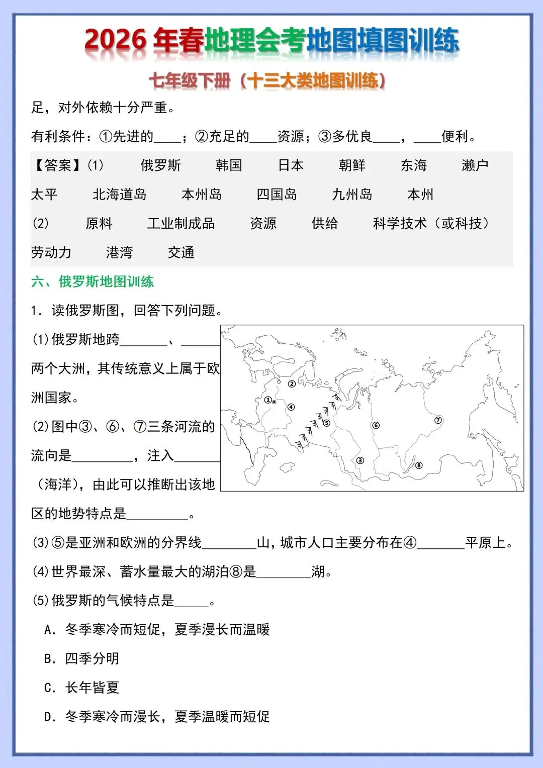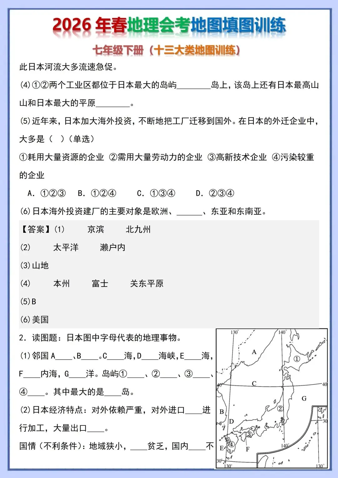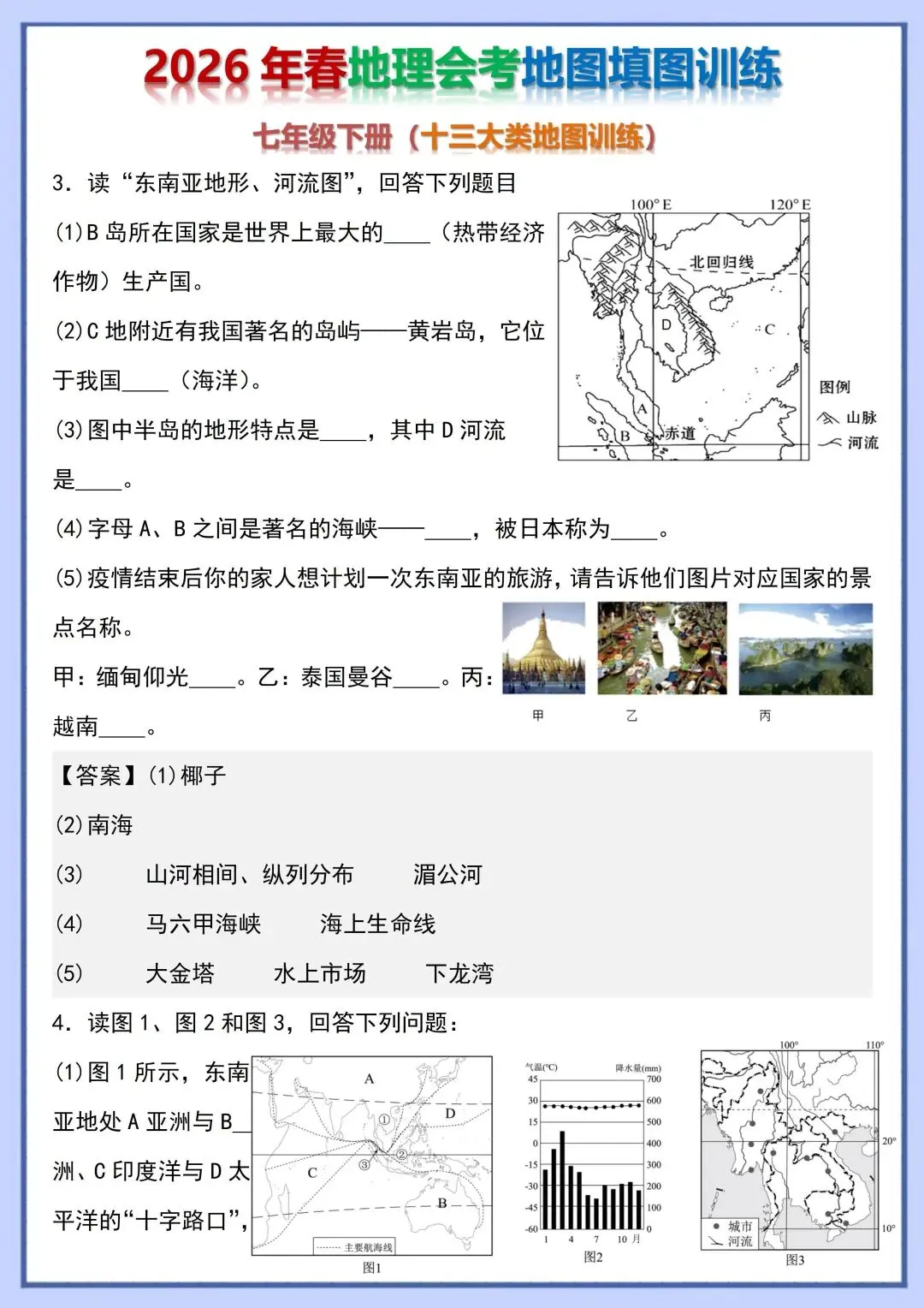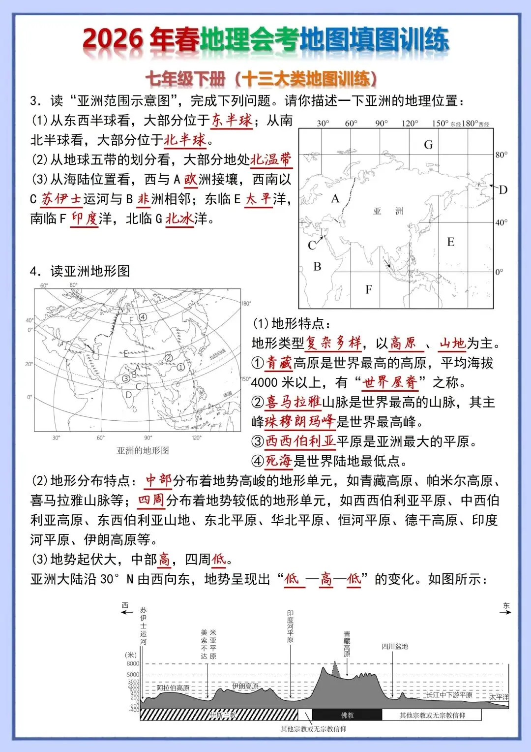 2026 初中地理会考复习地图填图训练,电子版可打印!