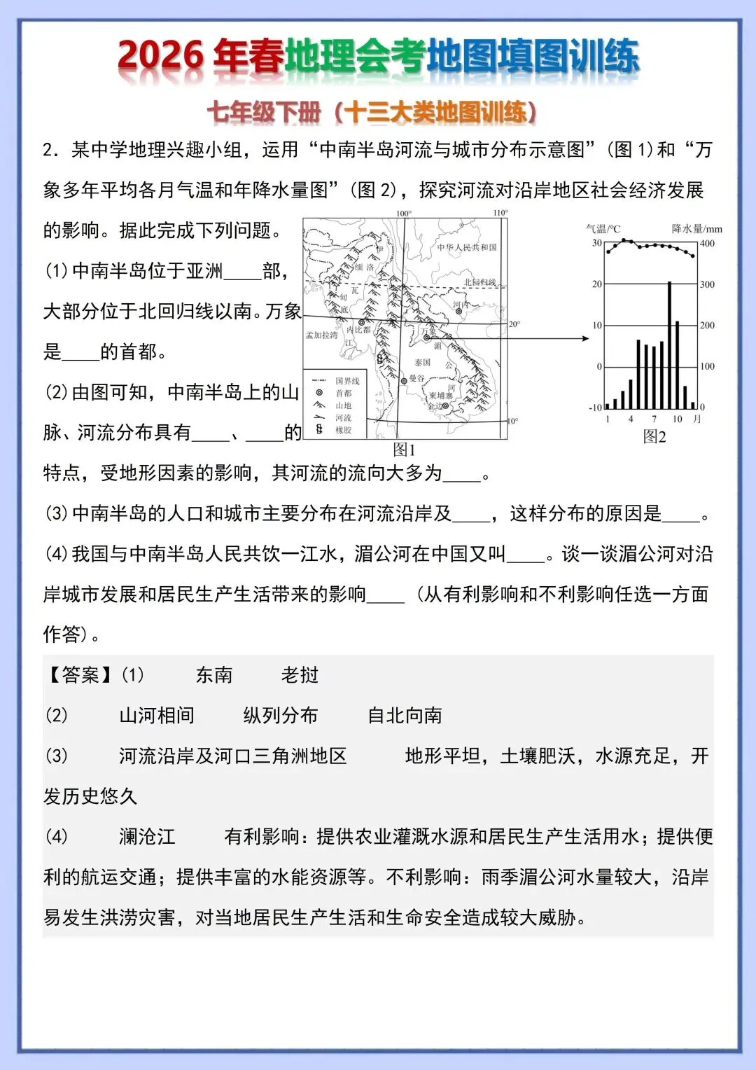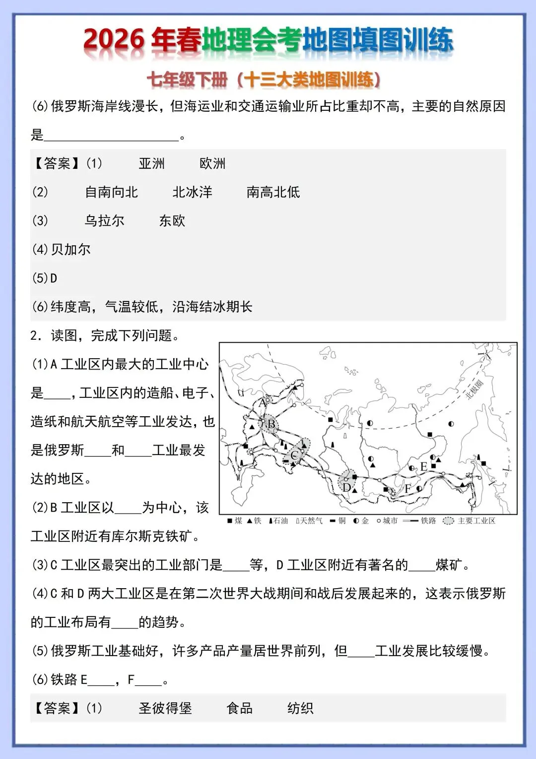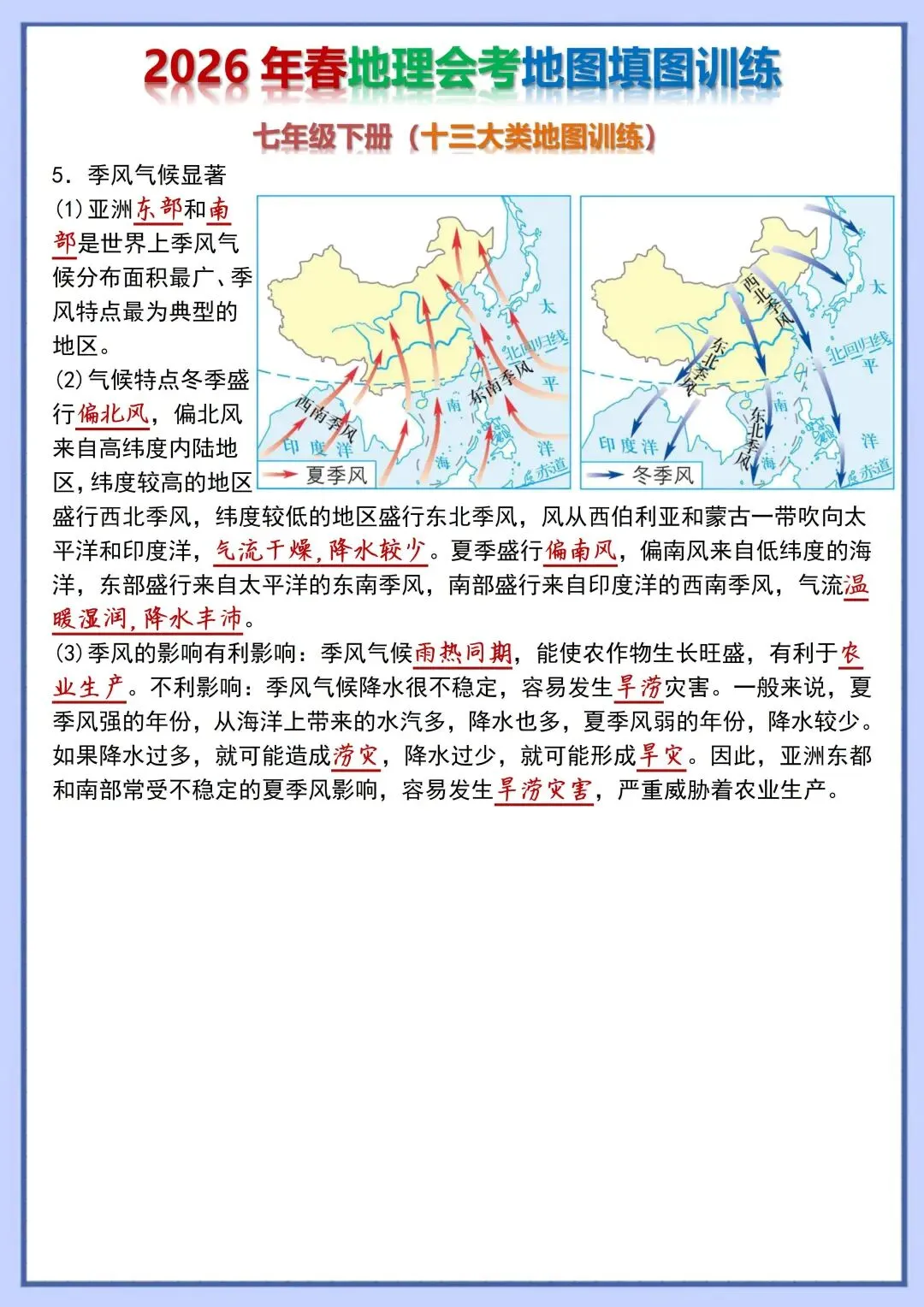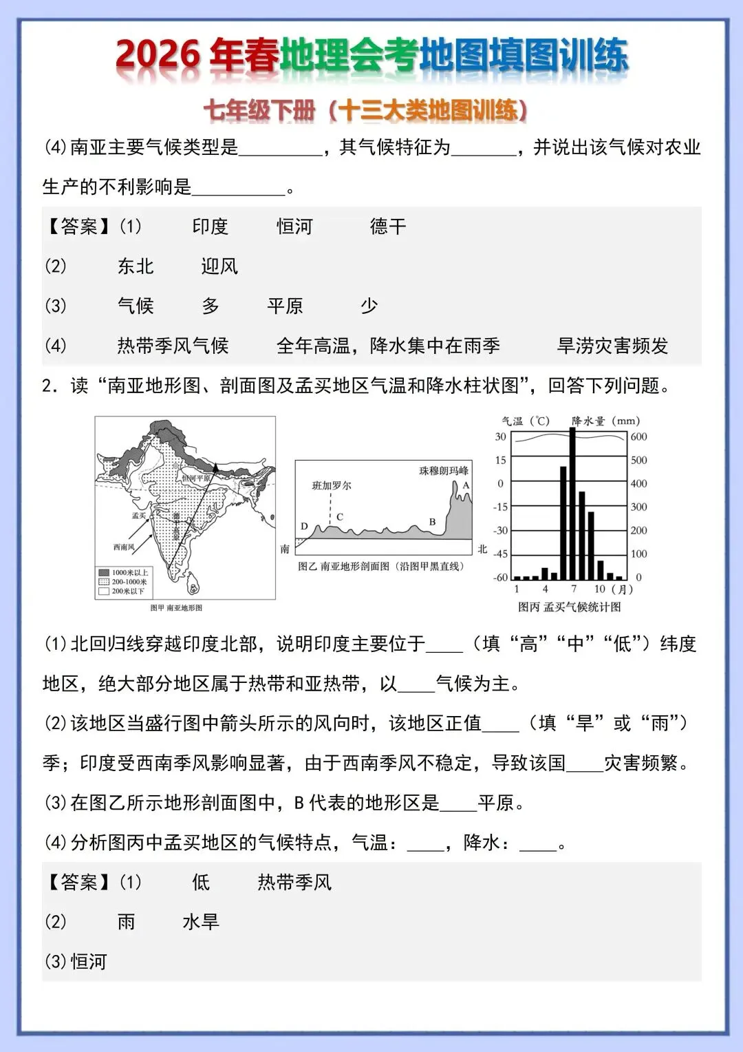 2026 初中地理会考复习地图填图训练,电子版可打印!