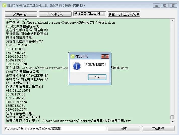 它就像一个智能 “数据猎手”,能自动扫描你导入的文件,精准识别并提取出所有手机号和固定电话。