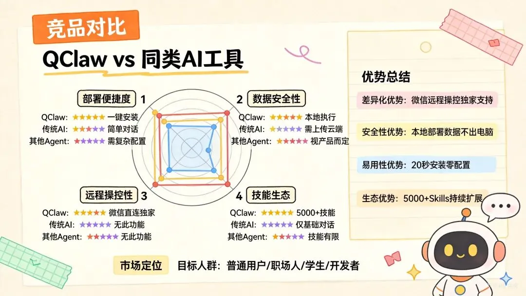 在众多AI工具中,QClaw能迅速脱颖而出,并非偶然。它精准地命中了当前用户对AI工具的几大核心痛点:部署复杂、数据隐私担忧、无法执行实际任务、缺乏生态扩展。其构建的五大优势,形成了一个难以被轻易复制的竞争壁垒。