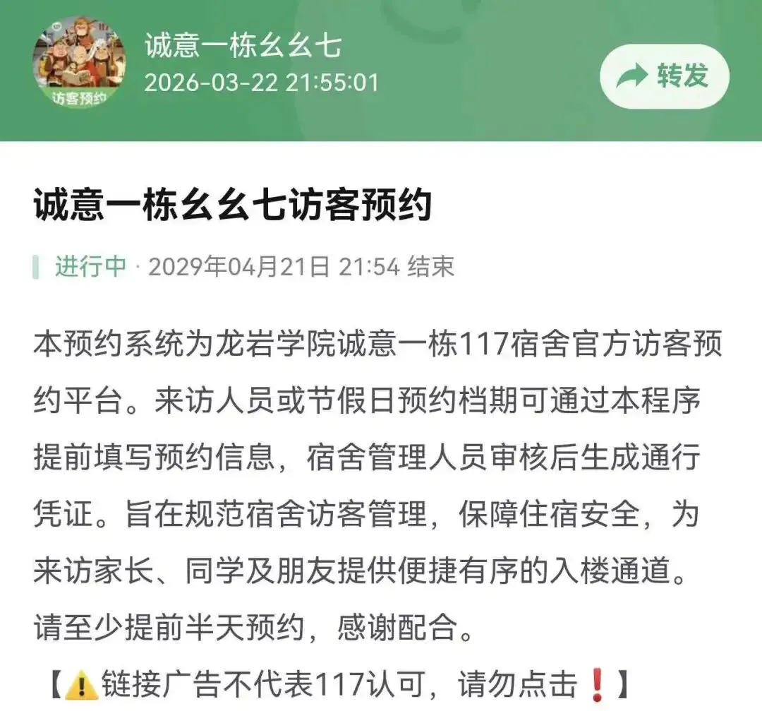 有同学反映工作日及假期常难以在本宿舍提交材料或联系宿舍成员,因此我们在“117日常”栏目中,新增“访客预约”子菜单。该功能面向所有用户开放,预约方式:一是填写“预约人信息”,来访人员可提前填写预约信息,经宿舍审核;二是“预约日期”,可选择合适时间进行预约。三是选择“预约对象”,可一次多选。该功能旨在规范宿舍访客接待流程,提升来访效率。