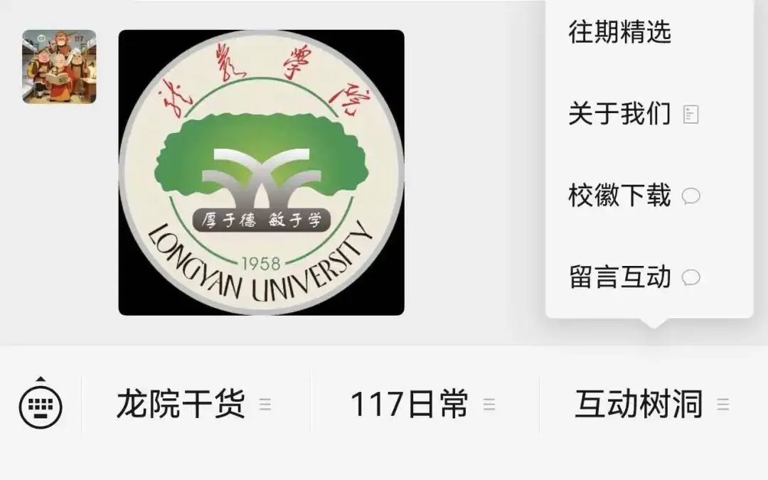 在“互动树洞”栏目中,新增“校徽下载”子菜单。用户点击后可下载龙岩学院高清校徽图片,文件格式为PNG透明底版本,适用于课件制作、文档封面、宣传材料、宿舍剪贴报等场景。