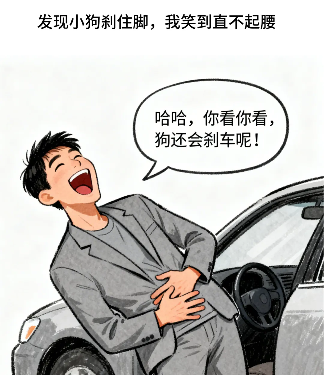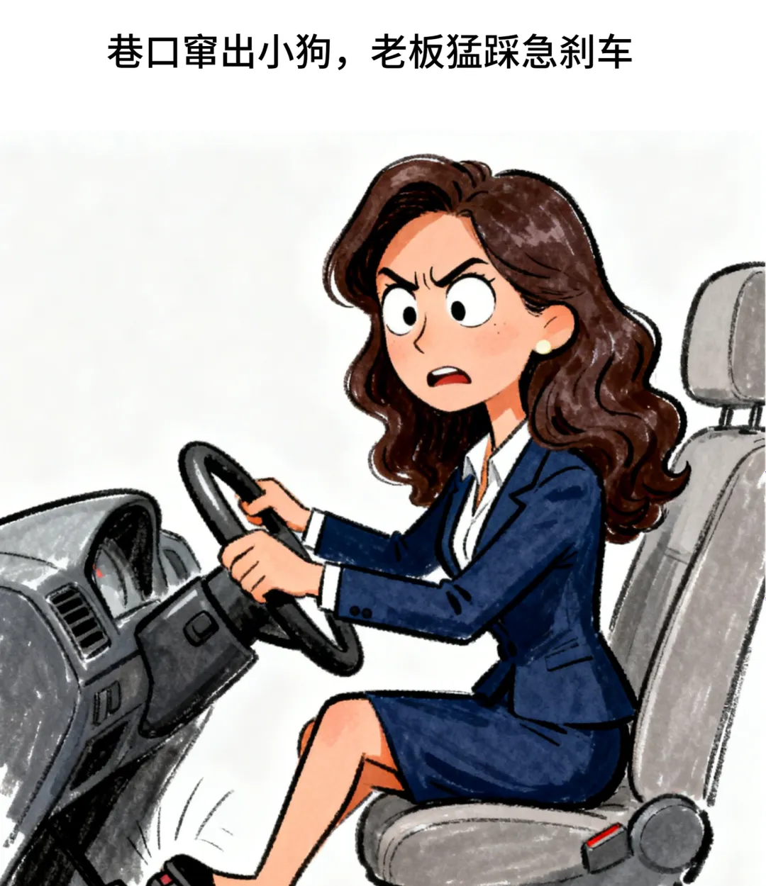 趣味漫画:女老板开车遇狗急刹,我笑说:你看,狗还会刹车呢!结果回到公司,我就被辞退了.