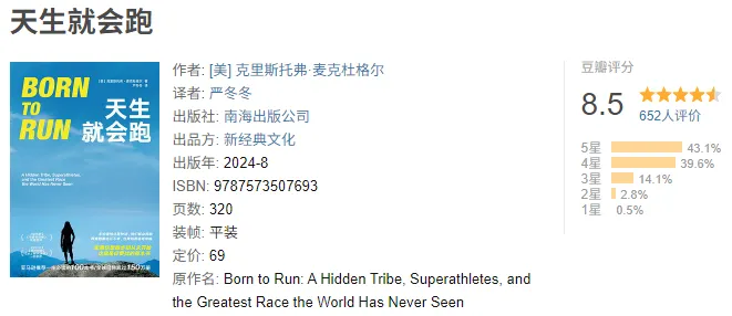短评2:《天生就会跑》,一定会入选我的年度十佳书籍,我从阅读中得到的愉悦感受,不亚于参加了一场心心念念的越野跑比赛。看完这本书,我马上去跑了个半程马拉松。顺顺利利。