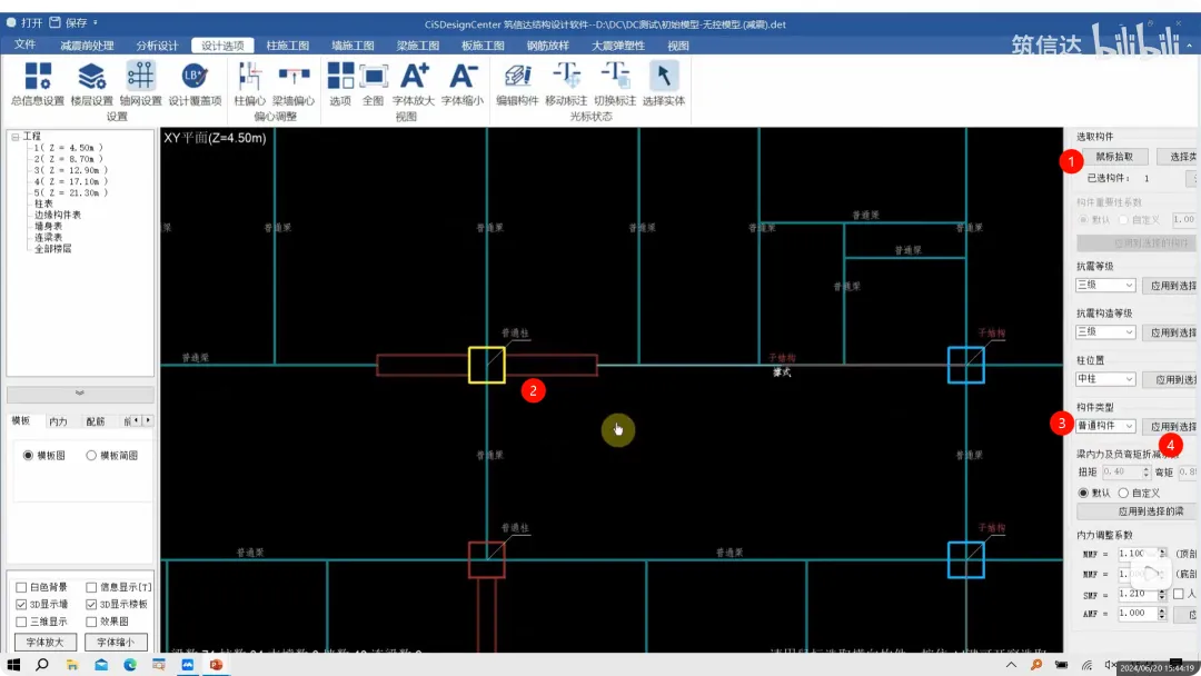 导则:中震设计,不考虑地震力放大,不考虑构件内力调整系数,中震弹性考虑荷载组合