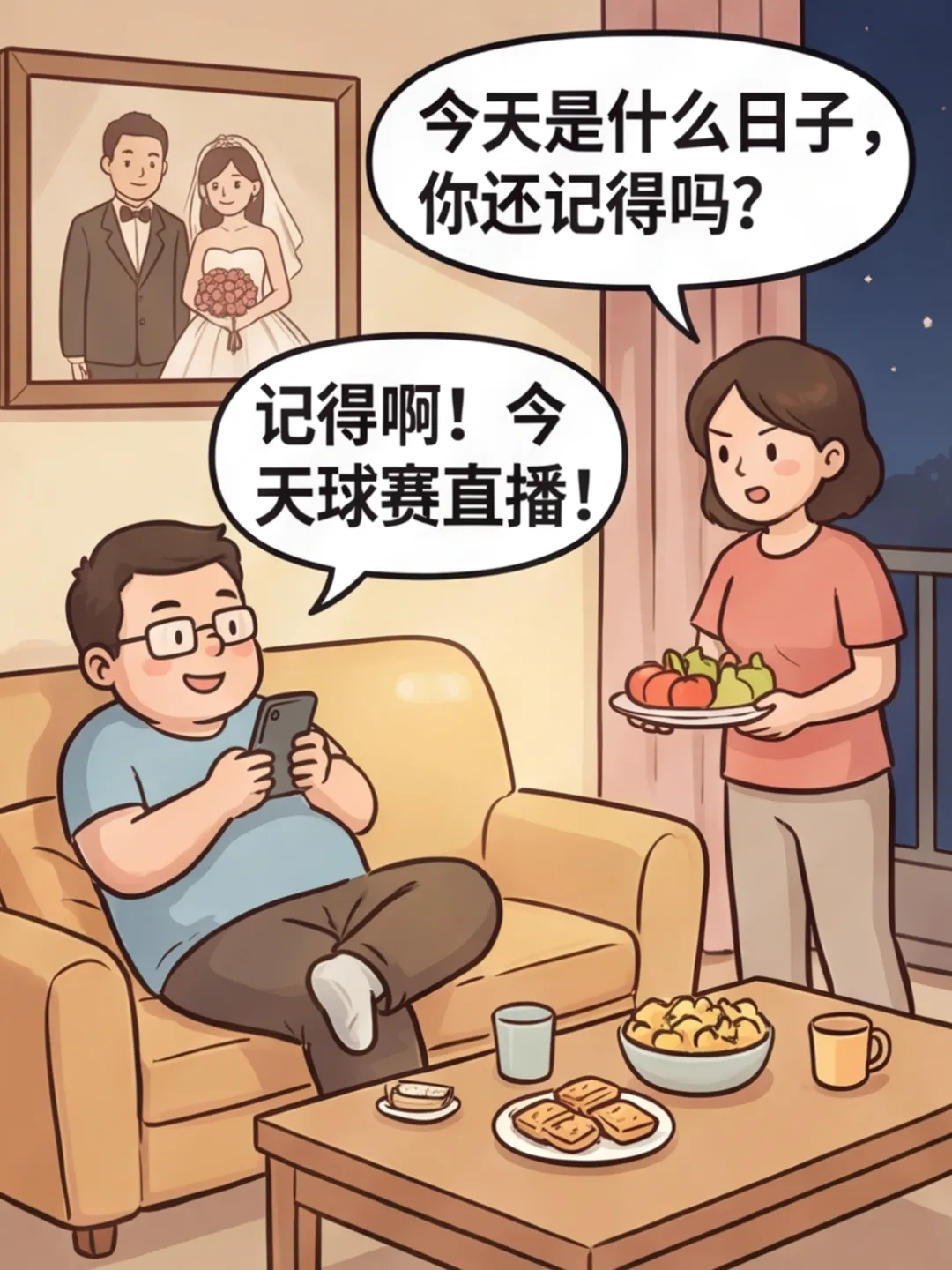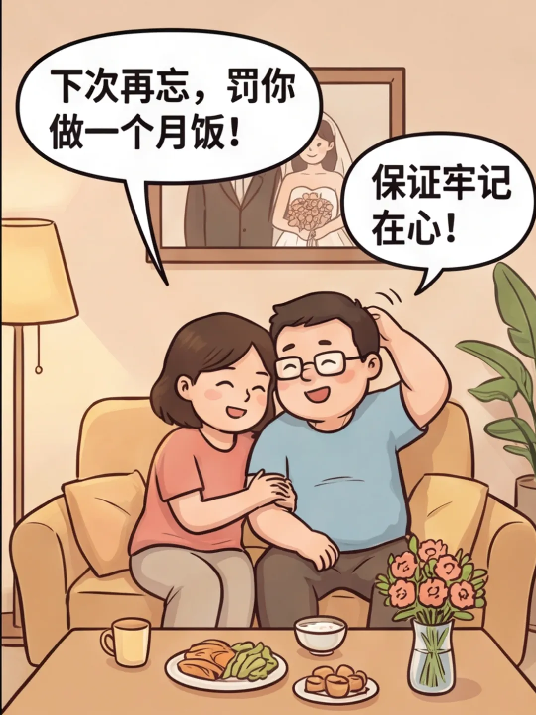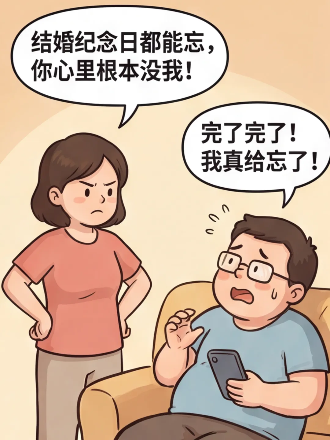 搞笑漫画:今天犯了一个大错,老婆生气了,我把结婚纪念日记错了