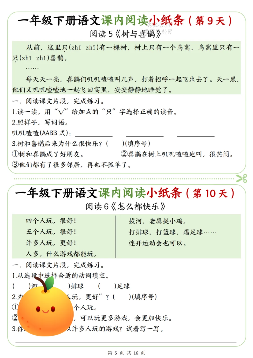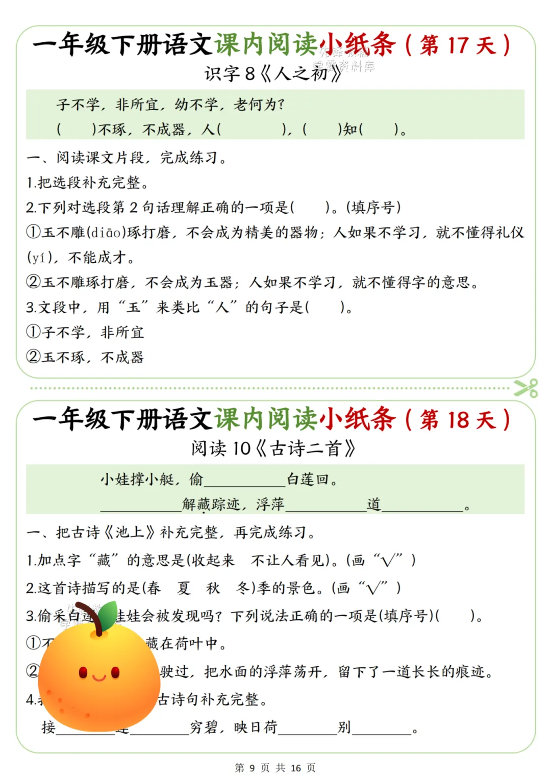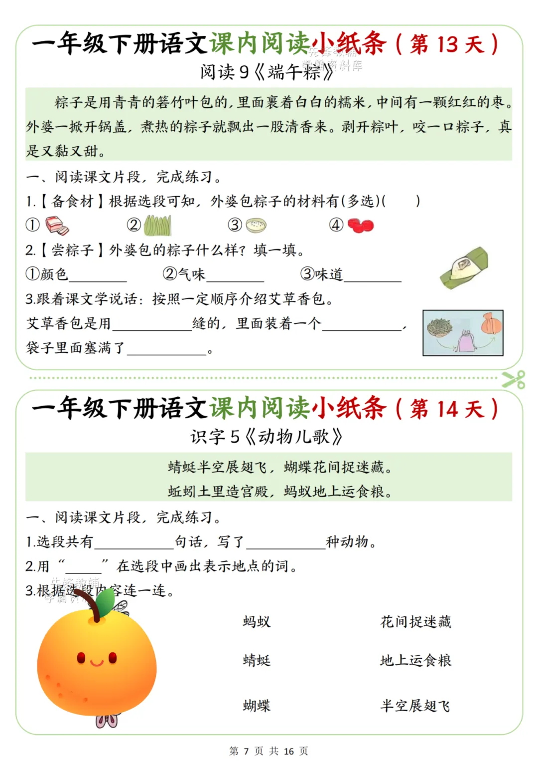 26春《一年级下册语文课内阅读小纸条》电子PDF文档共16页,公益分享,即拿即用,可直接打印。