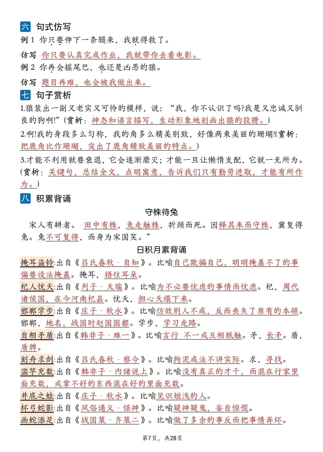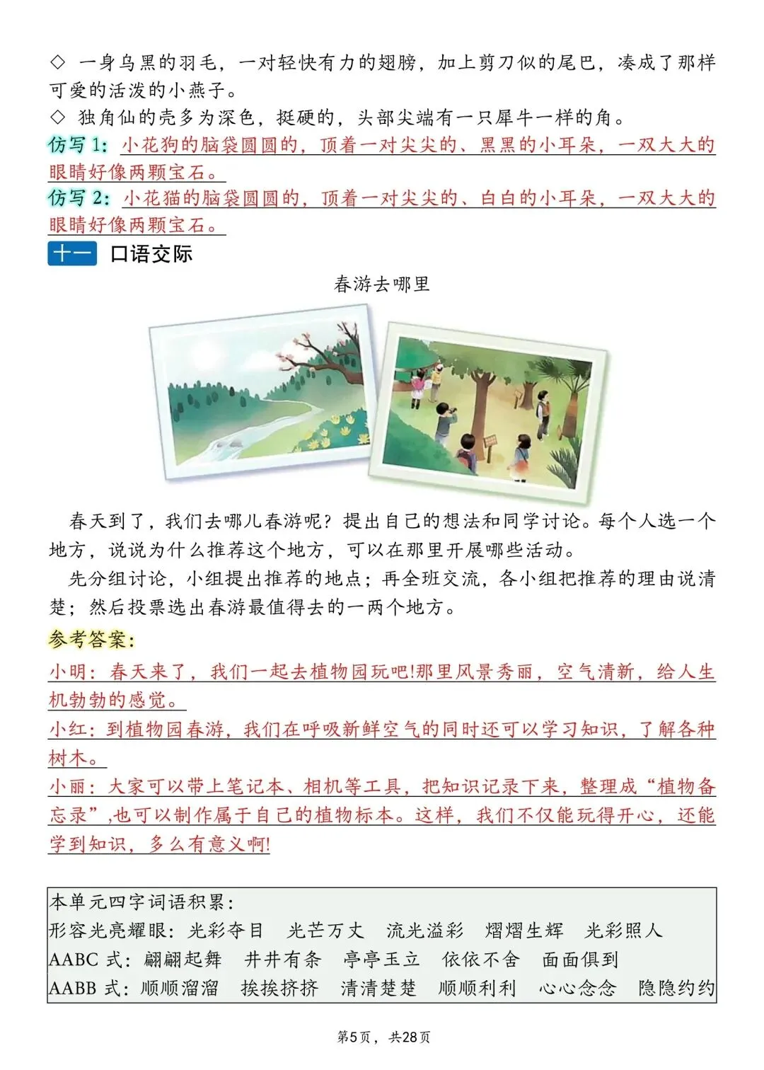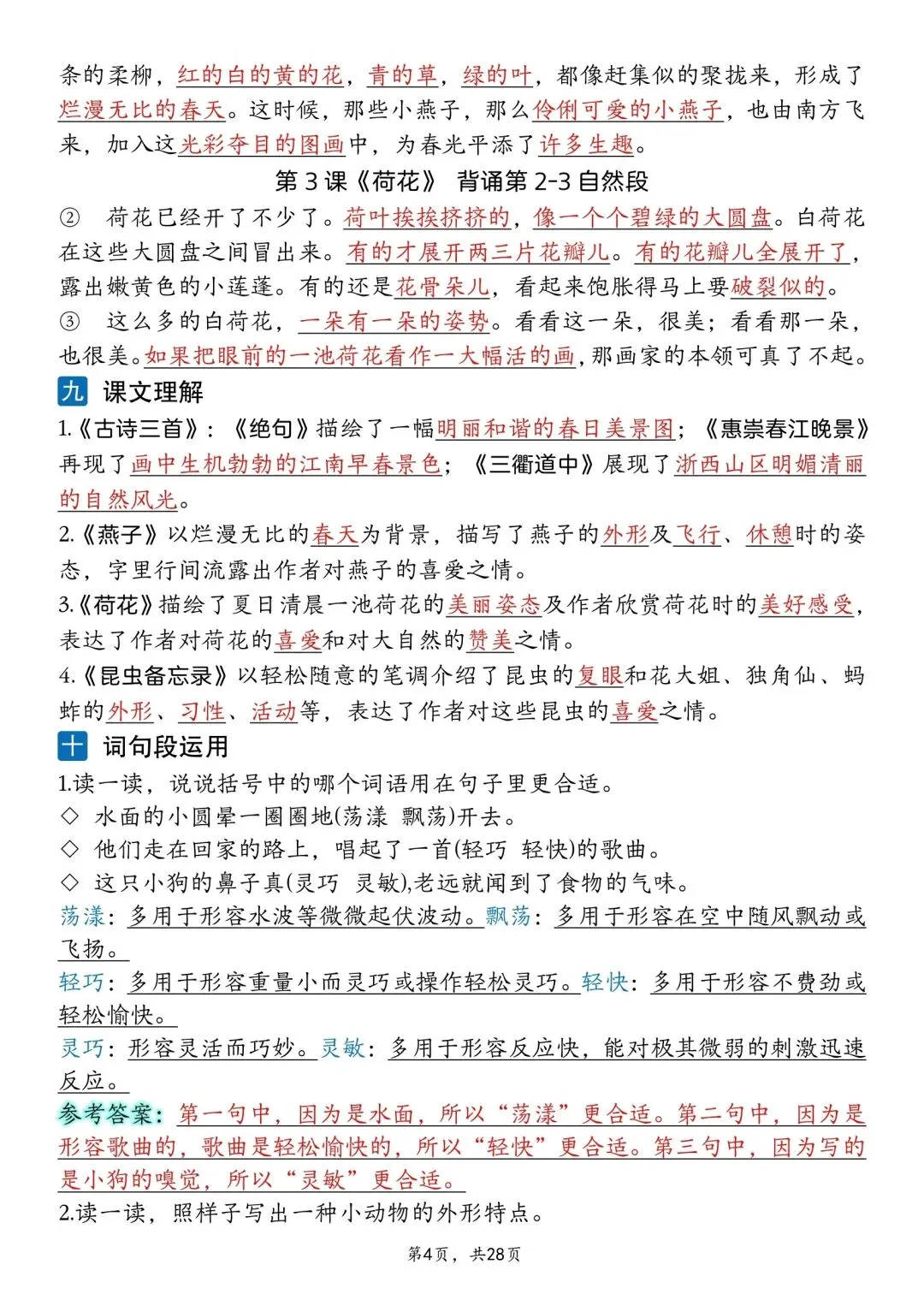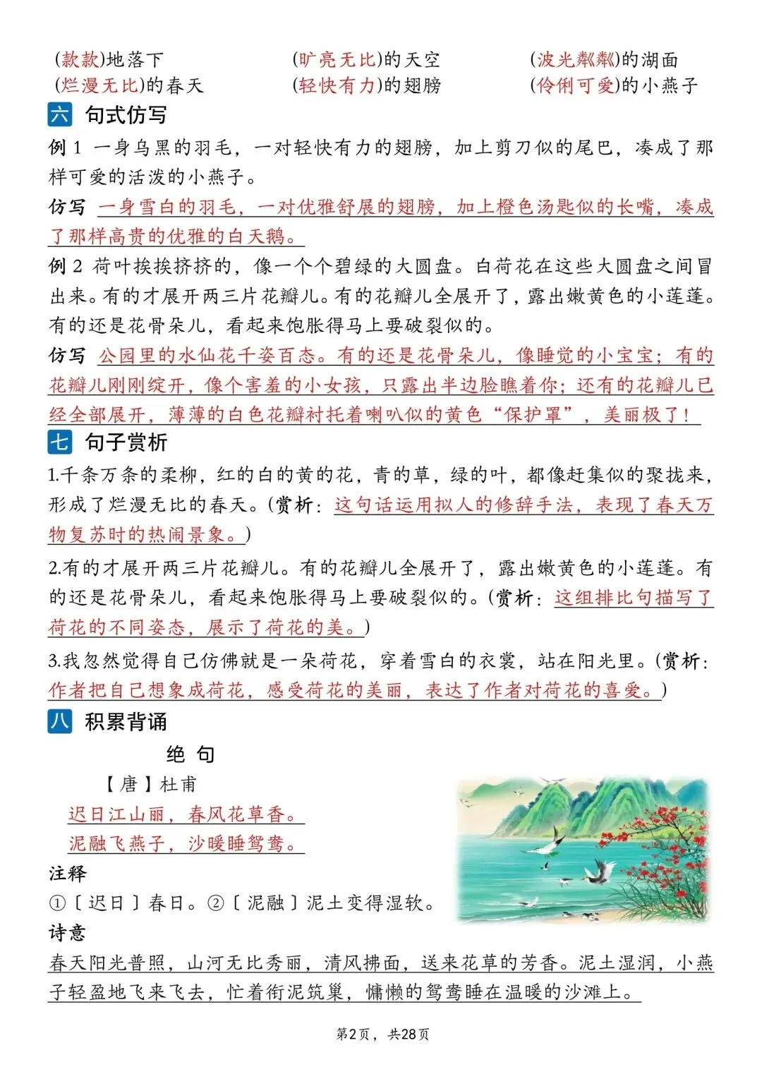 26春三年级下册语文1-8单元知识清单汇总高清电子版可打印