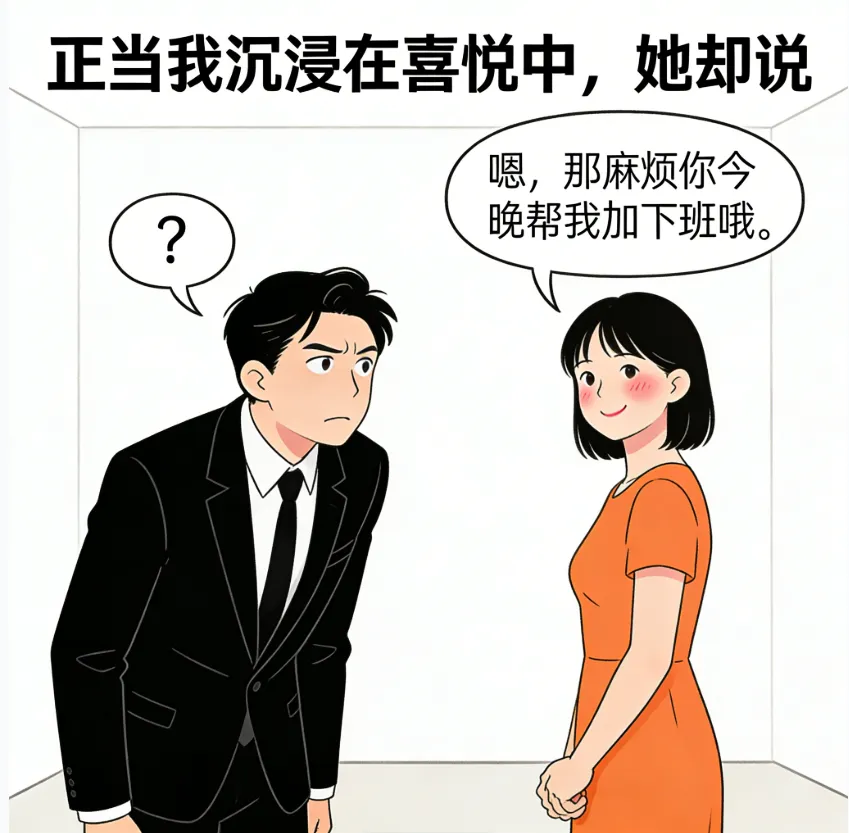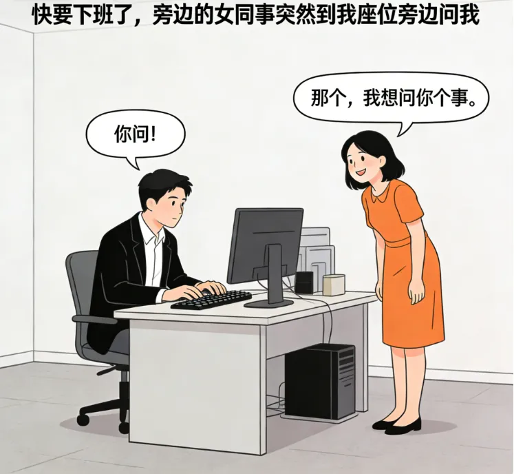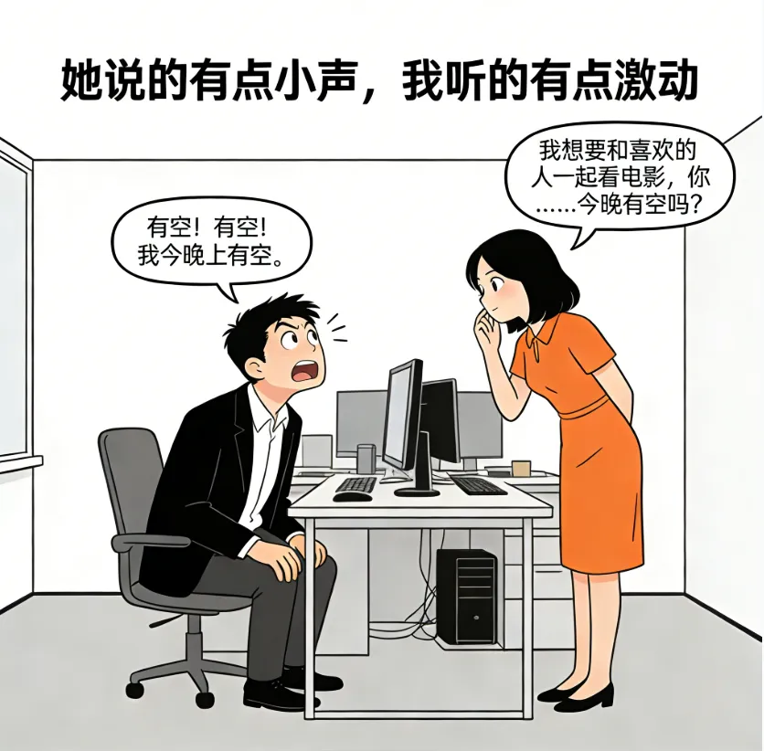 趣味漫画:办公室一女同事问我:今晚有没有空,她想和喜欢的人一起去看电影.我激动的说:有空有空.