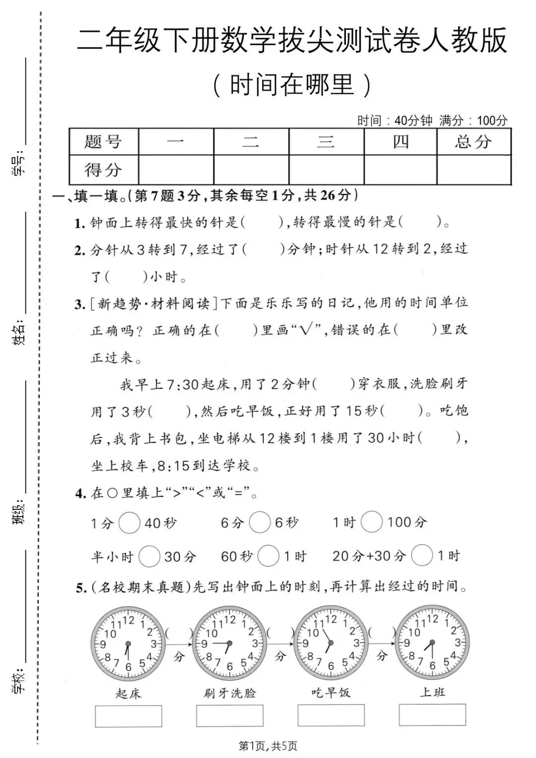 可下载丨26春二年级下册数学时间在哪里拔尖测试卷《人教版》,电子版可打印