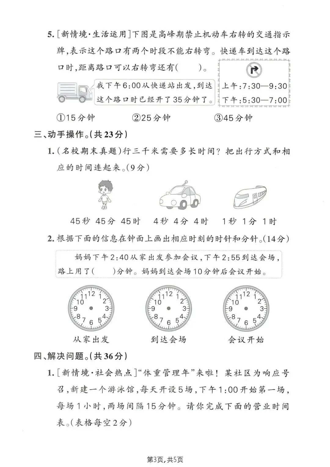 本套测试卷同步人教版二年级下册数学「认识时间」核心单元,专为时间认读、计算、生活应用拔尖训练设计,覆盖基础认读、时刻读写、经过时间计算、钟面操作四大必考模块。试卷采用「基础过关 + 进阶提升 + 综合拓展」三层梯度编排,精准突破易错点,可直接打印装订使用,是二年级学生夯实时间基础、攻克难点、冲刺满分的必备拔尖测试资料。