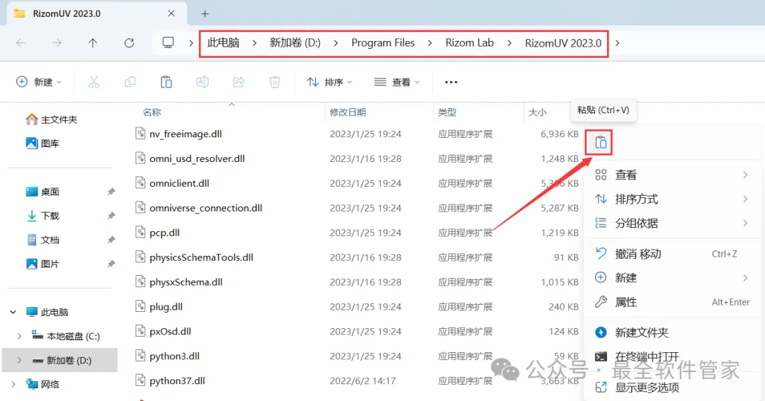 1、下载RizomUV 2023软件安装包到电脑上,右键选择【解压到RizomUV 2023\】