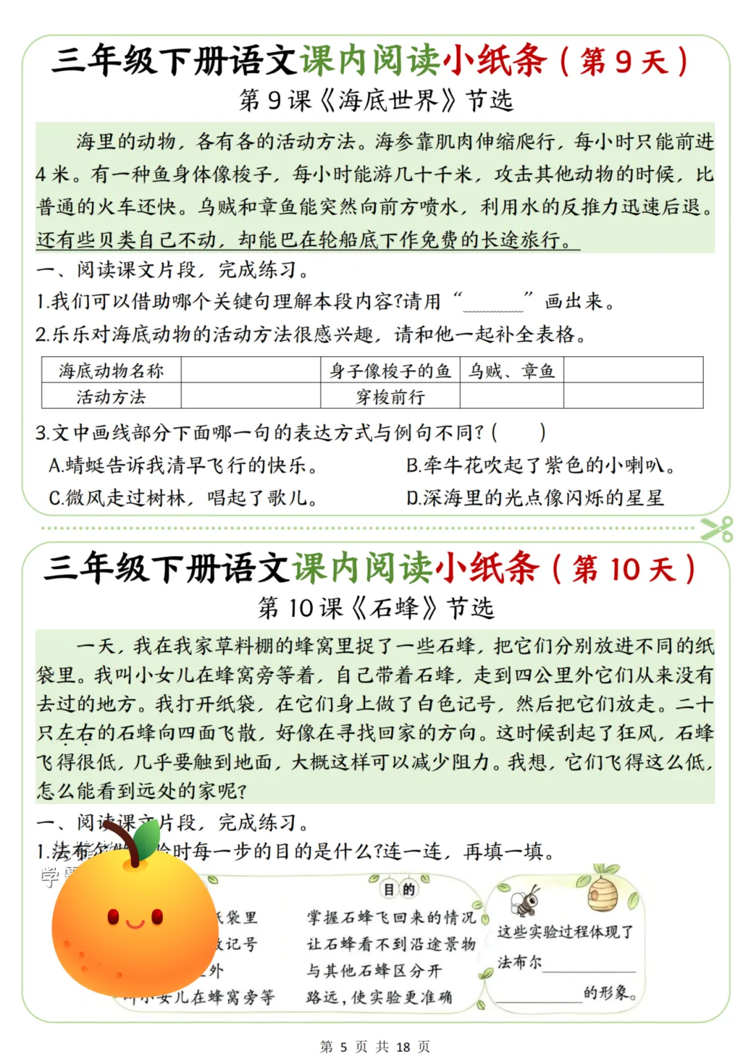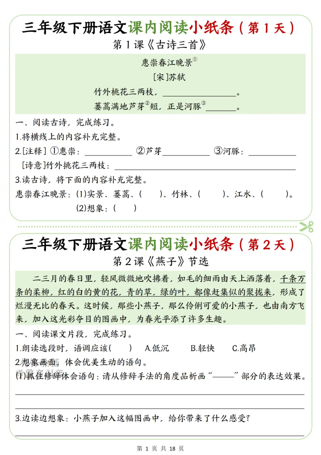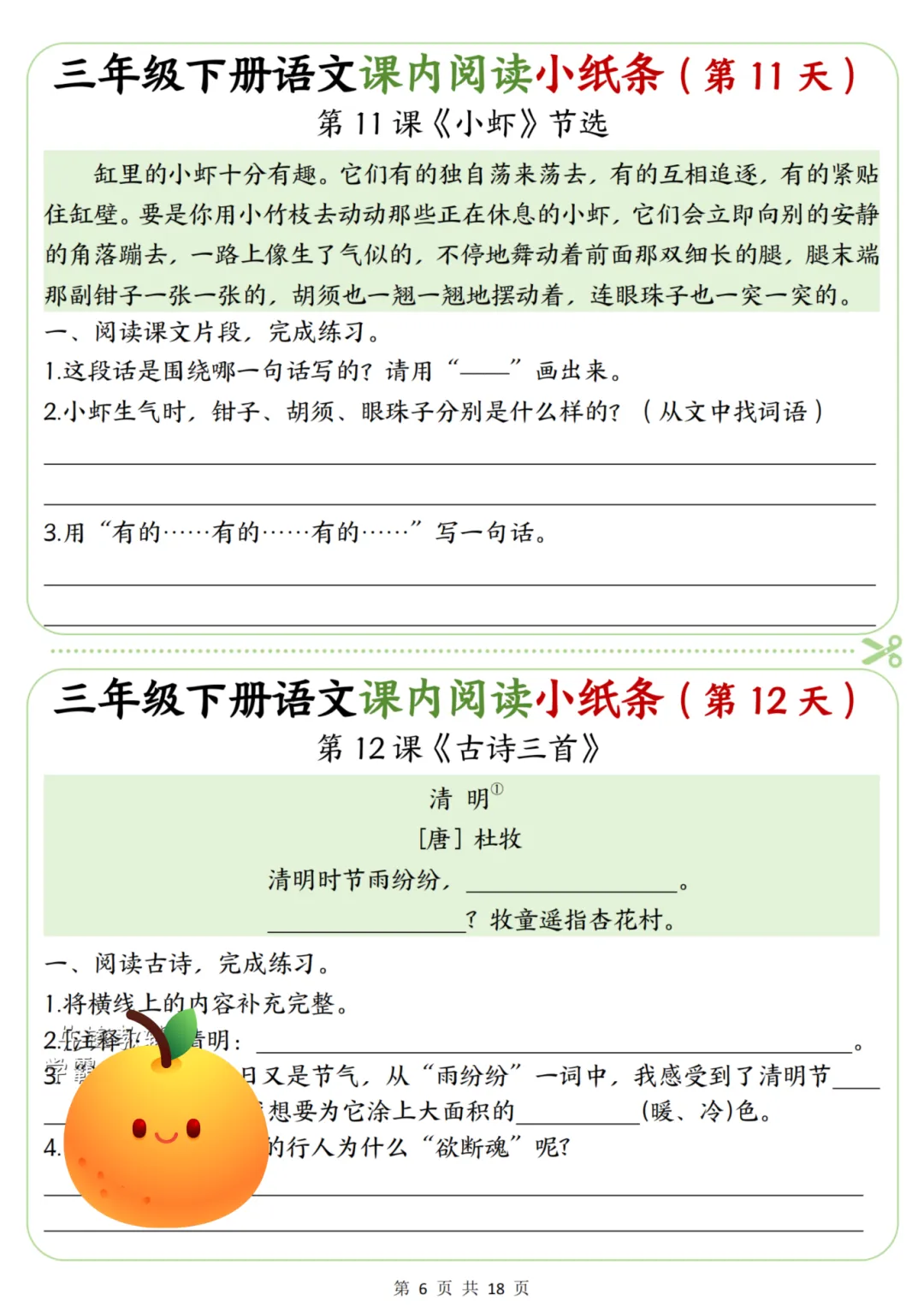 26春《三年级下册语文课内阅读小纸条》电子PDF文档共18页,公益分享,即拿即用,可直接打印。