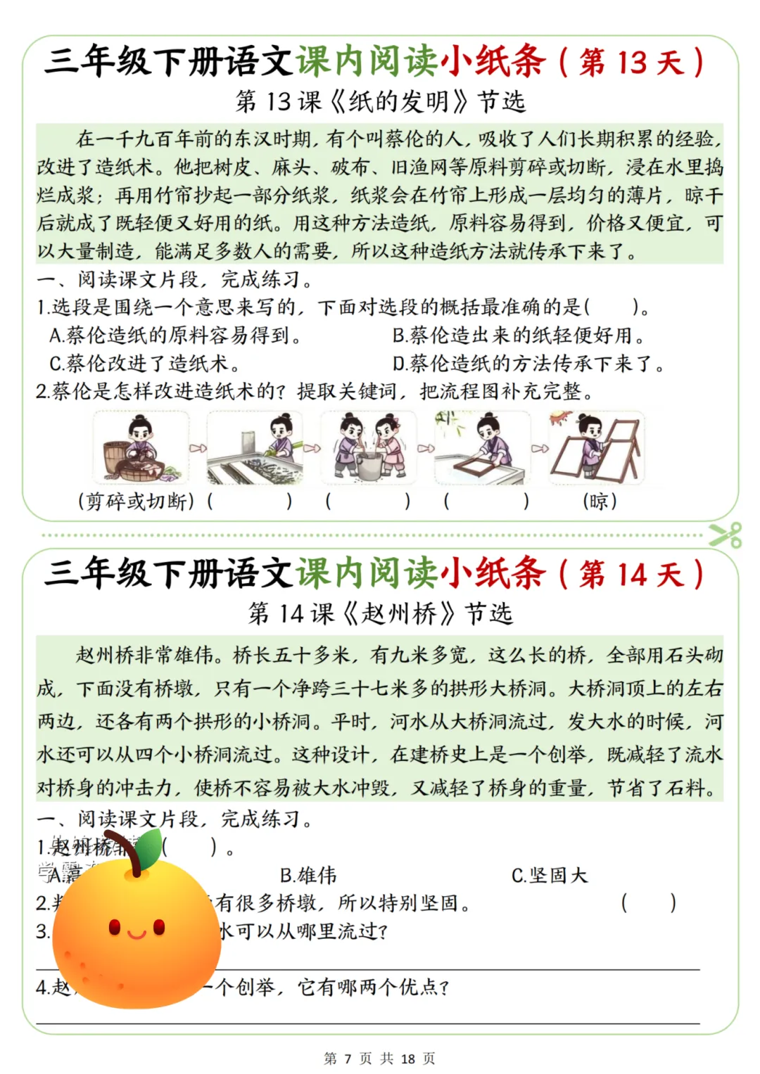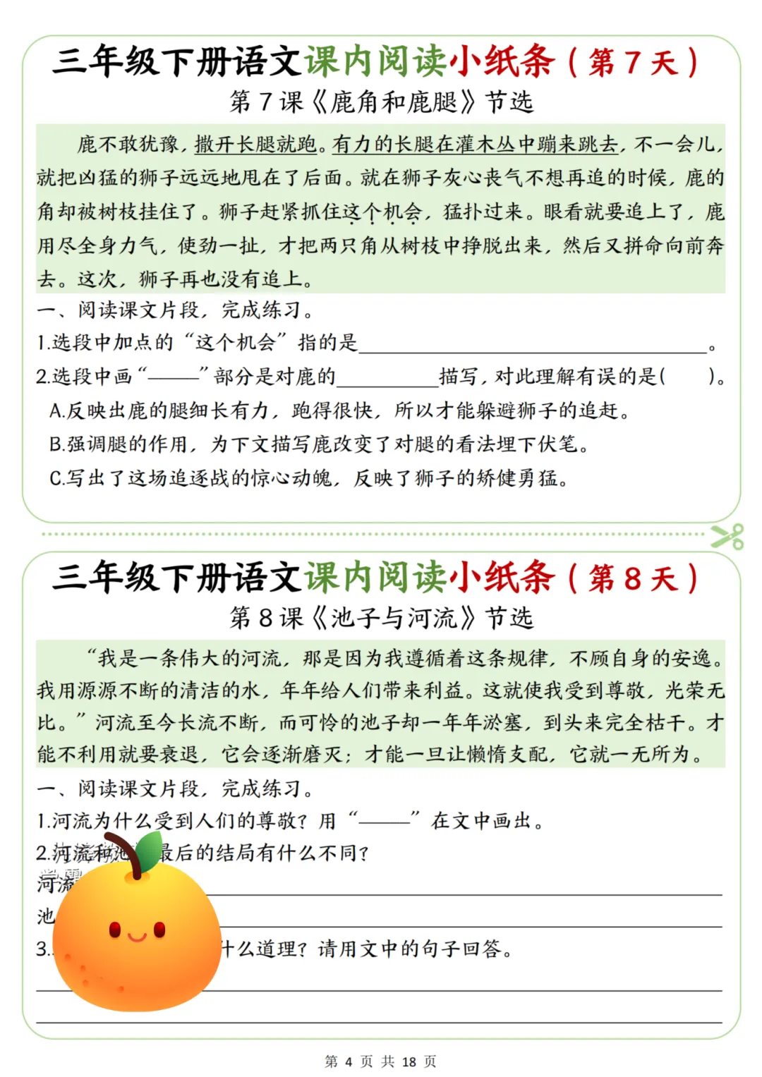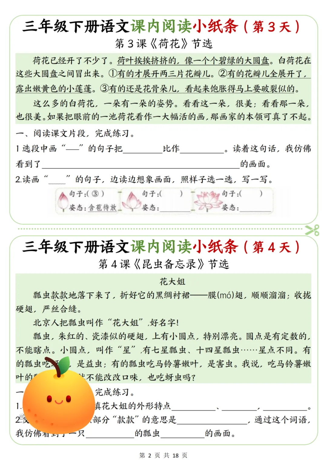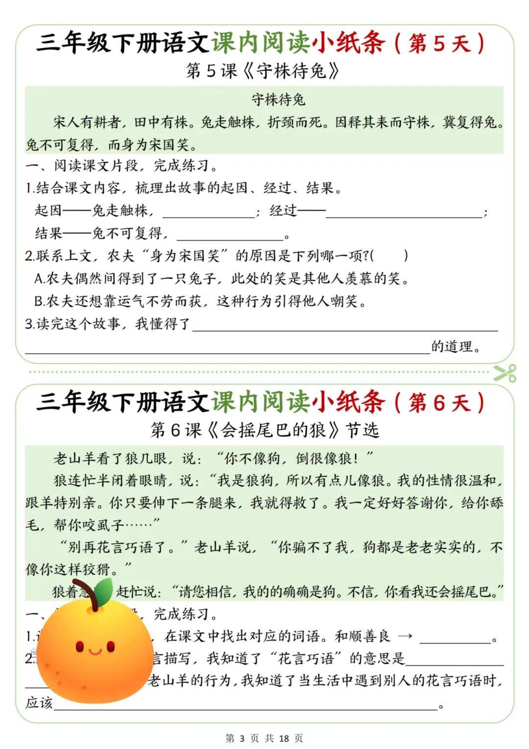 26春《三年级下册语文课内阅读小纸条》电子PDF文档共18页,公益分享,即拿即用,可直接打印。