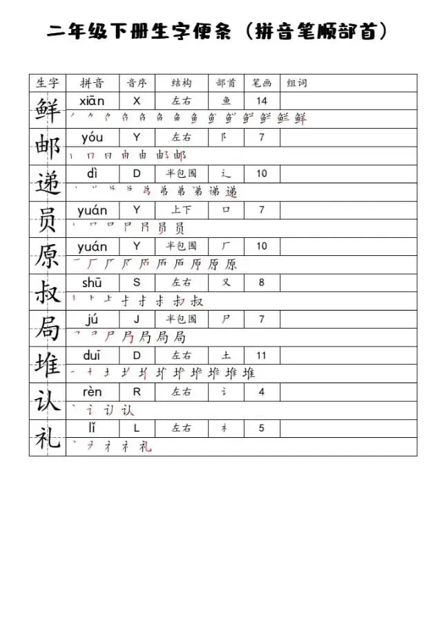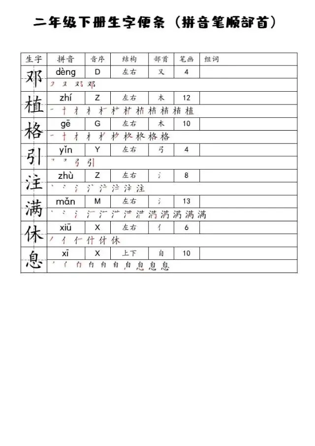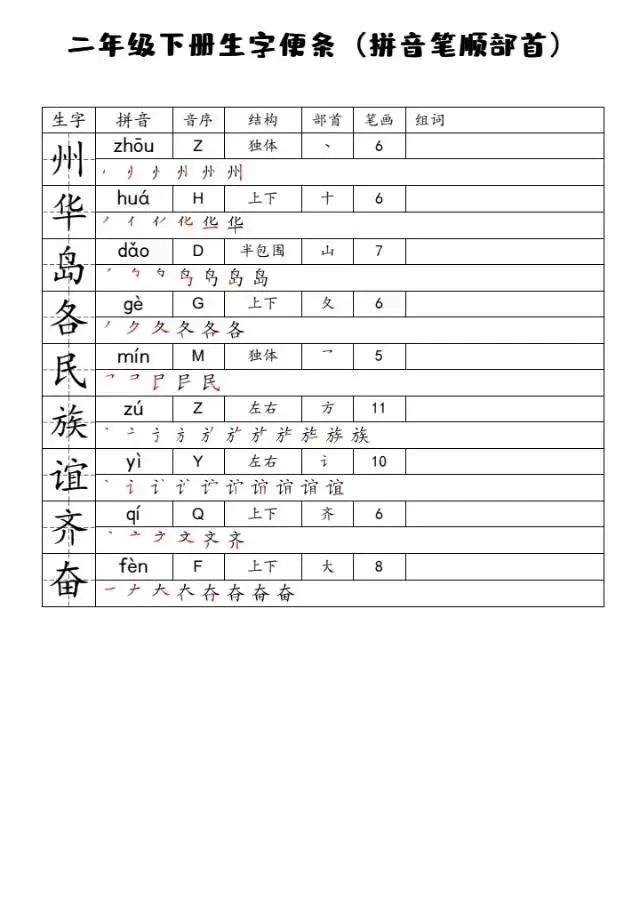26春一二三四五六年级语文下册生字便条,可下载打印,独家资源,速存!