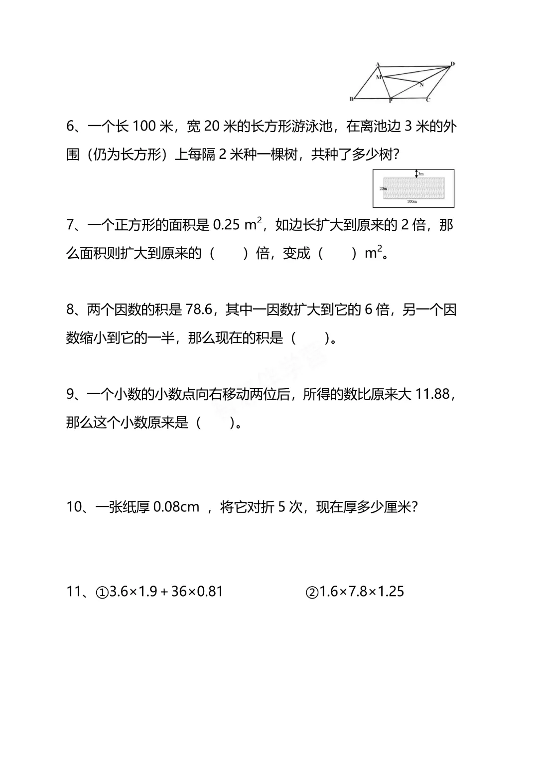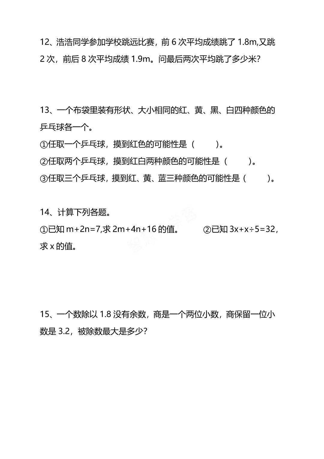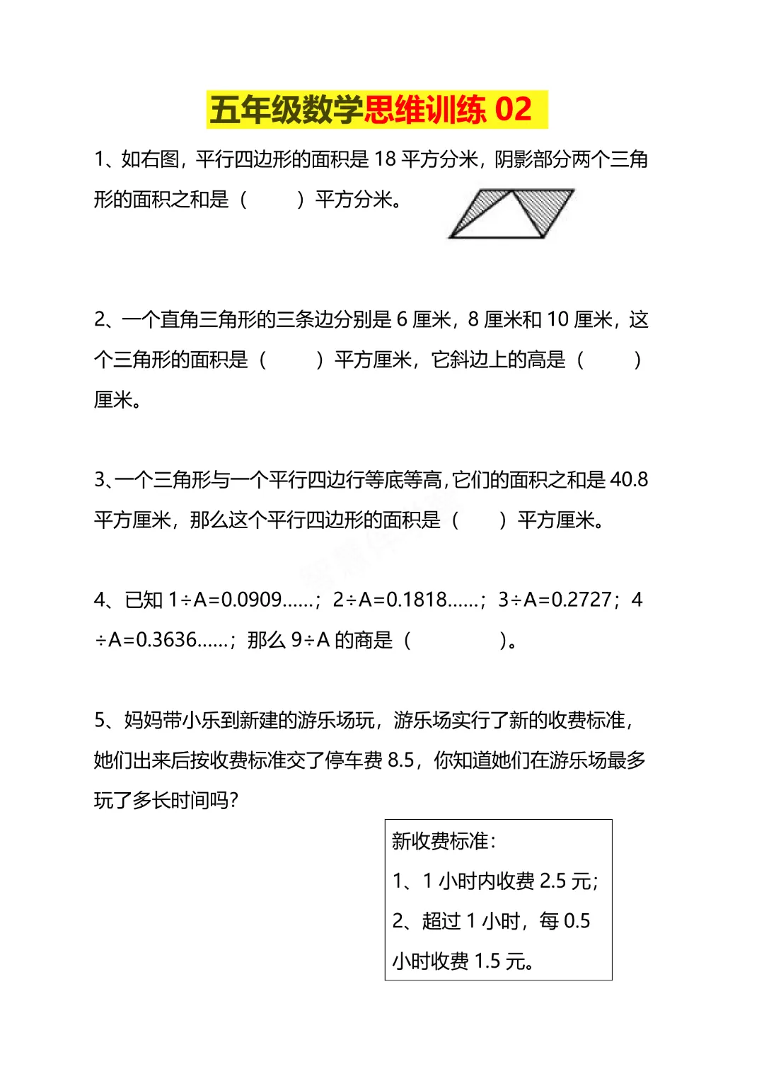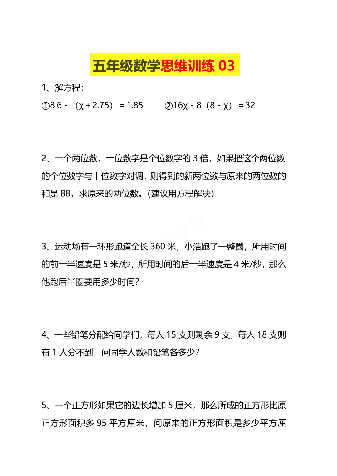 今天给大家分享的是:五年级下册数学【通用版】【思维训练题4套】丨完整高清电子版可打印
