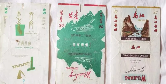 图中的三张老烟标,最左边那个叫天竹香烟,盒正中一根毛笔字竹影儿,旧时字画的意思,苗岭盒子上印着一座绿山,半点工业气都没有,马江的盒图更写实,山水画里配几句外文,看着挺洋气,但家里人说那时候卖得也就普通烟的价,谁真当宝贝,往往抽完烟卷还舍不得扔,几张油纸悄悄藏抽屉底下,愣是给留下来了。