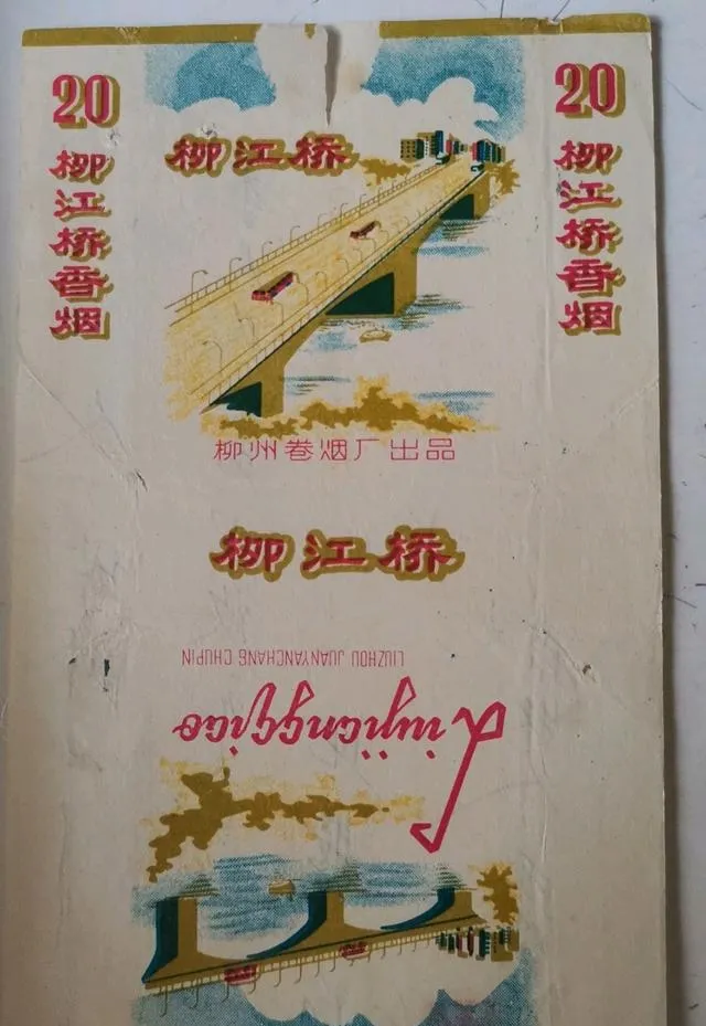这个烟盒正面画的就是柳江桥本人,桥上小红车正跑,下面一笔一笔把水流画得细致,小时候有亲戚在广西,逢年过节会带几包回来,爸爸边抽边说,这种烟特适合夏天解馋,味道偏清爽,前后才三毛一包,便宜得很,现在柳州的年轻人未必都见过,偶尔在杂货铺翻出来,老板都得琢磨半天是哪朝的货色。