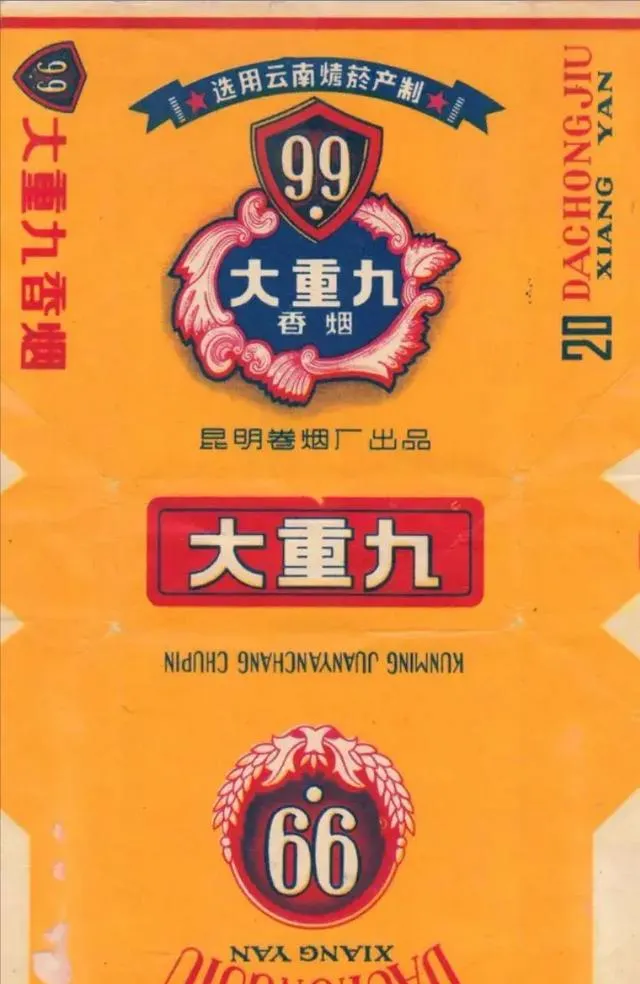 大重九可不是谁都抽得起,黄色的壳子红蓝勾边,六角多价钱那拨年代算得上贵货,烟厂直接贴着“昆明出品”那一行字,八十年代抢着要的东西,现在再有钱,想买也难了,电视剧老是出现,真见过实物的,不多。