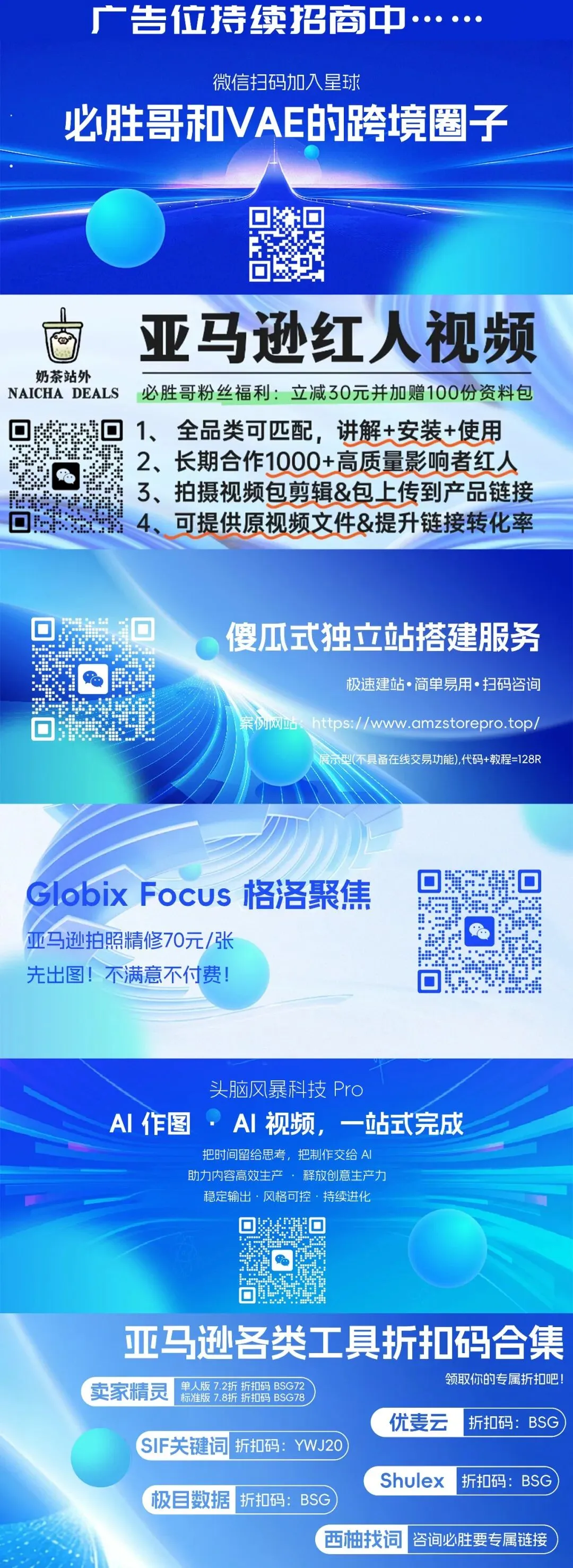 VAE创建了几个运营交流群,进群是完全免费的,群内自由交流(亚马逊相关的),服务商、货代、培训机构勿扰。在群里VAE会不定期分享亚马逊各种运营资料包,最新时事政策的分析,其它群日报总结,各种资源对接等等,感兴趣的朋友可以可以添加V:shuangV2026,备注VAE免费群。