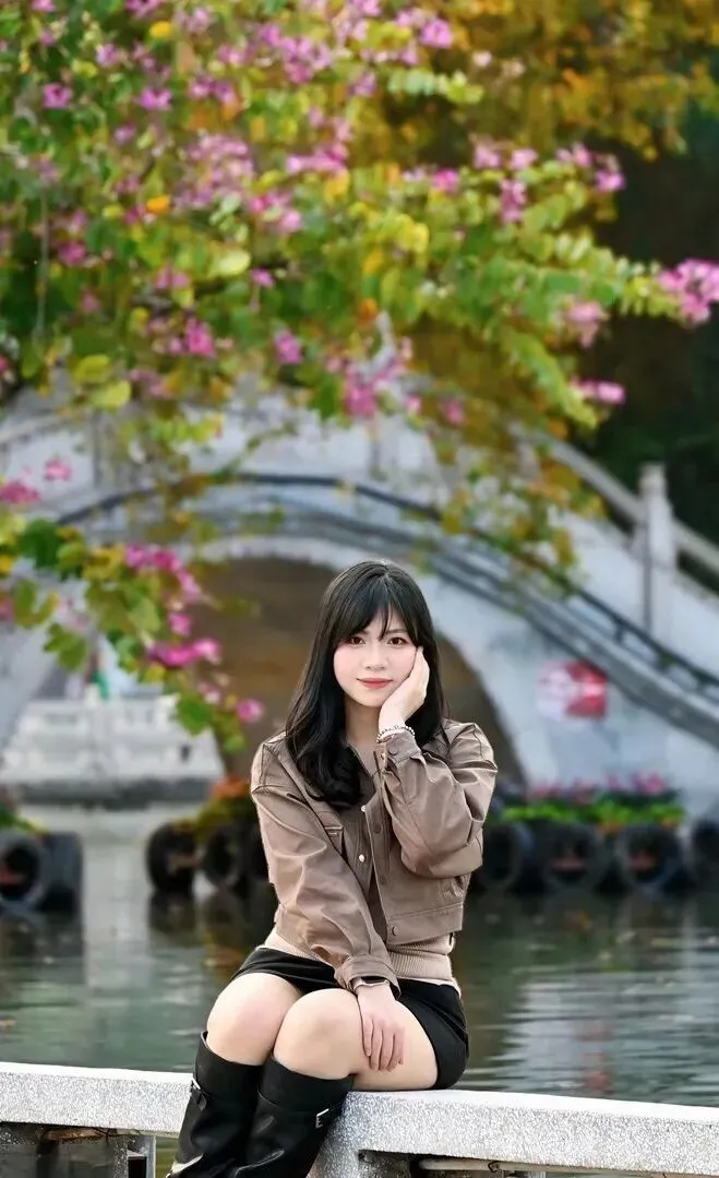 文艺少女最喜清纯风。卡其棕色皮夹克下面配米色打底衫,保暖而不显粗糙。下面穿一条黑色包臀短裙,简洁大方又不失时尚气息,搭配黑色高筒靴,清爽自然的气息弥漫开来。秋日下午穿此一袭去咖啡馆坐坐、在公园里散步,心情会变得更好。