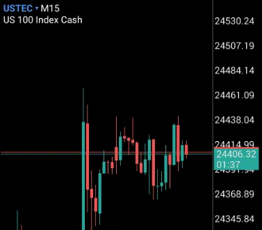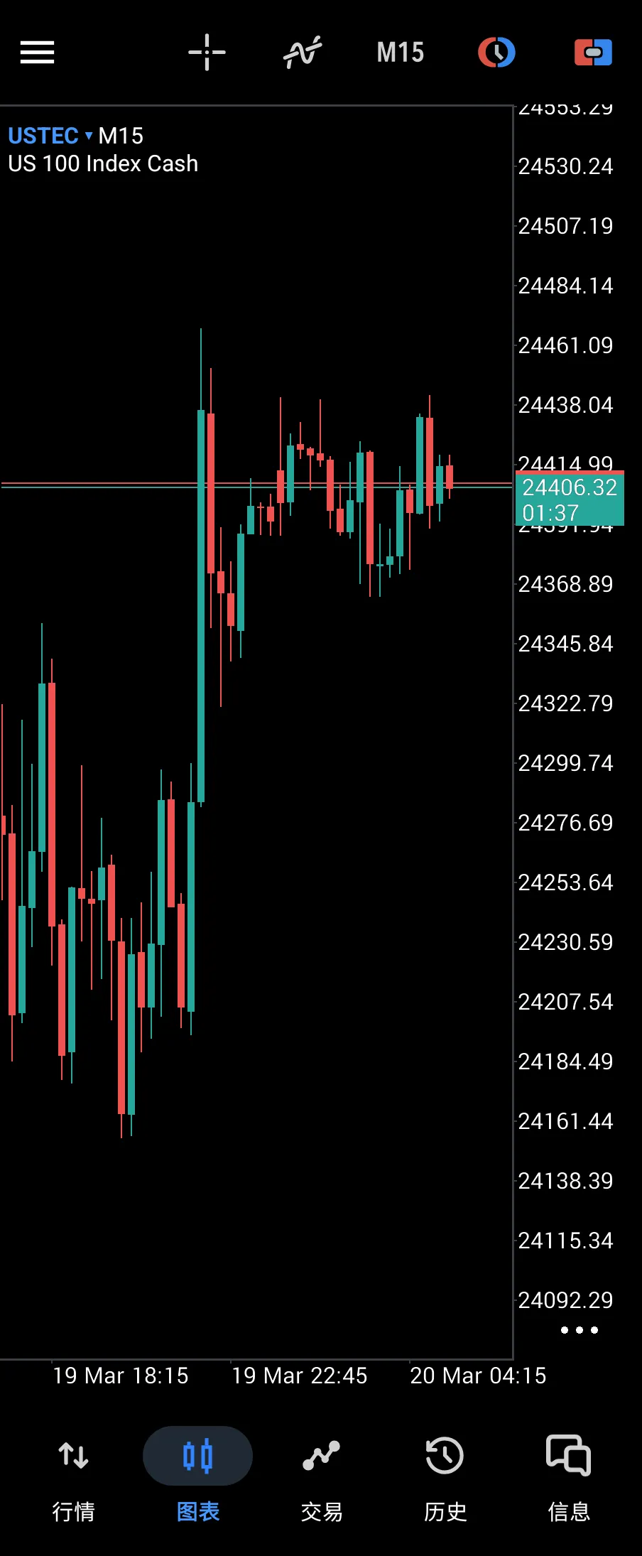 比如现在举例的是,MT5图表里,15分钟K线的走势图:
